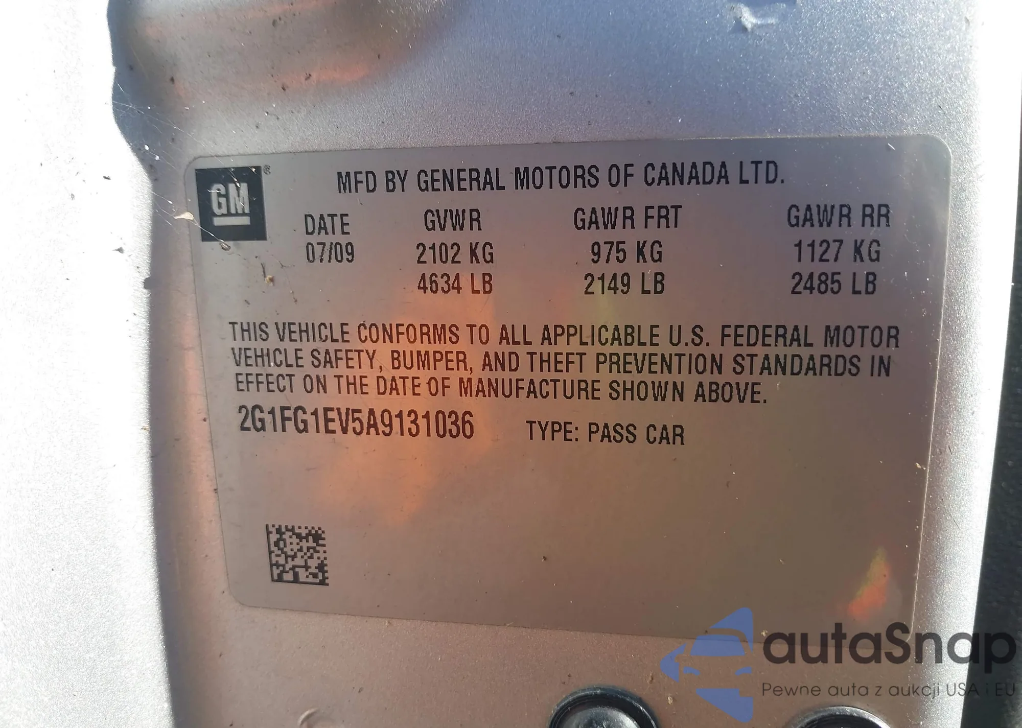 • VIN 2G1FG1EV5A9131036
