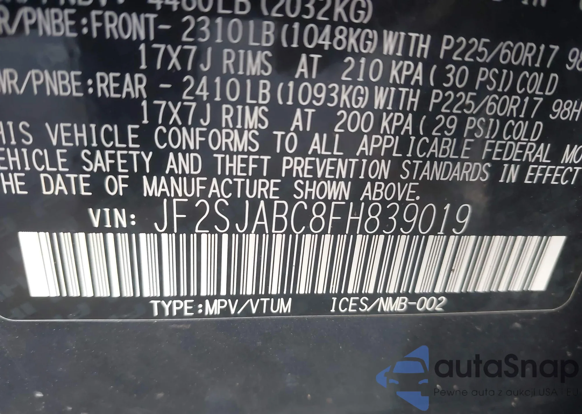 • VIN JF2SJABC8FH839019