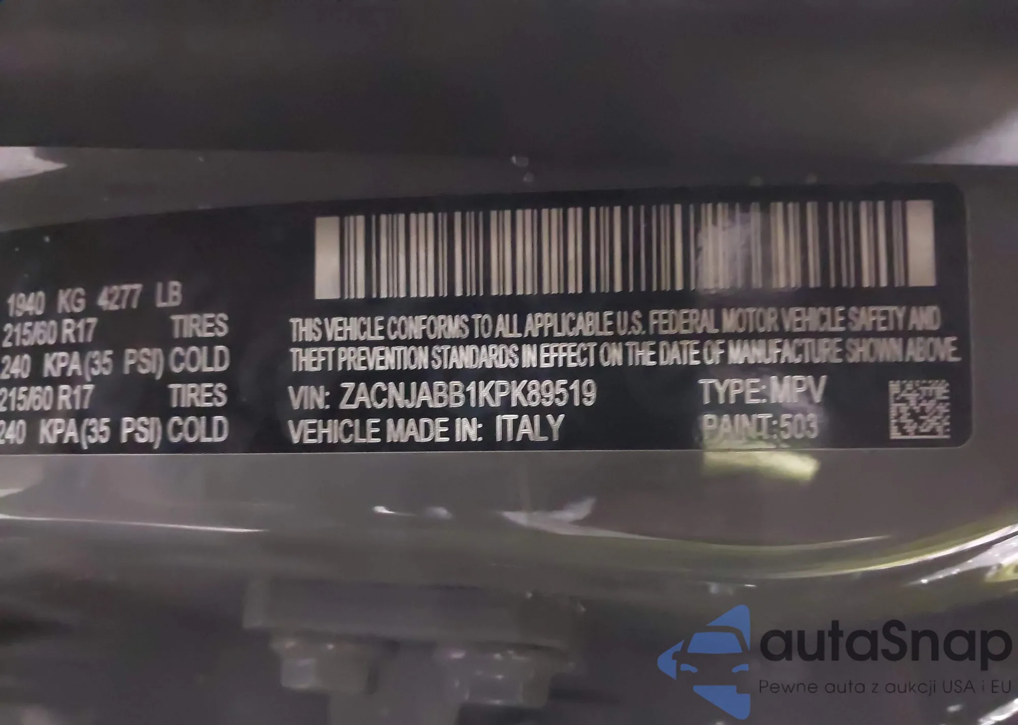 • VIN ZACNJABB1KPK89519