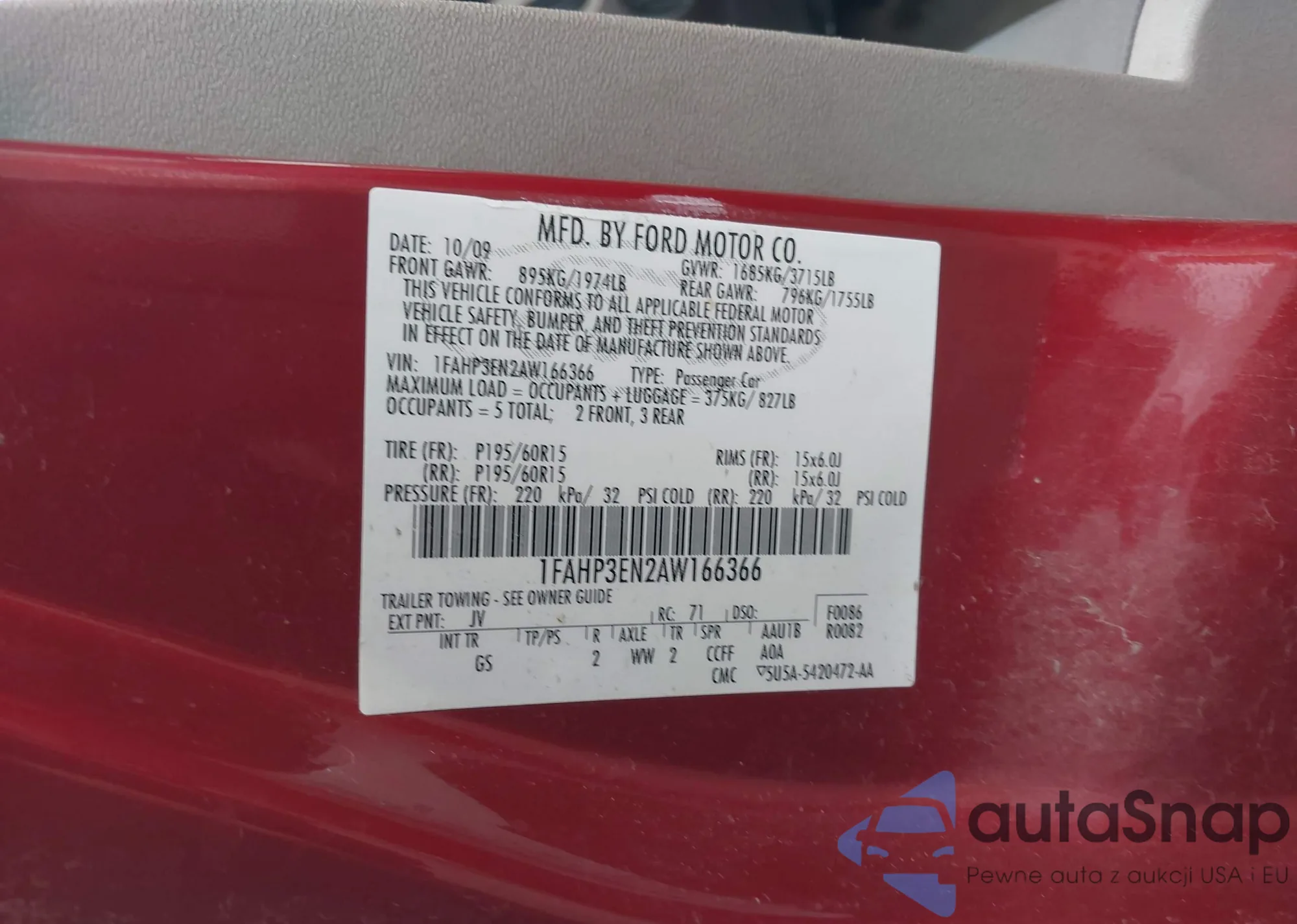 • VIN 1FAHP3EN2AW166366
