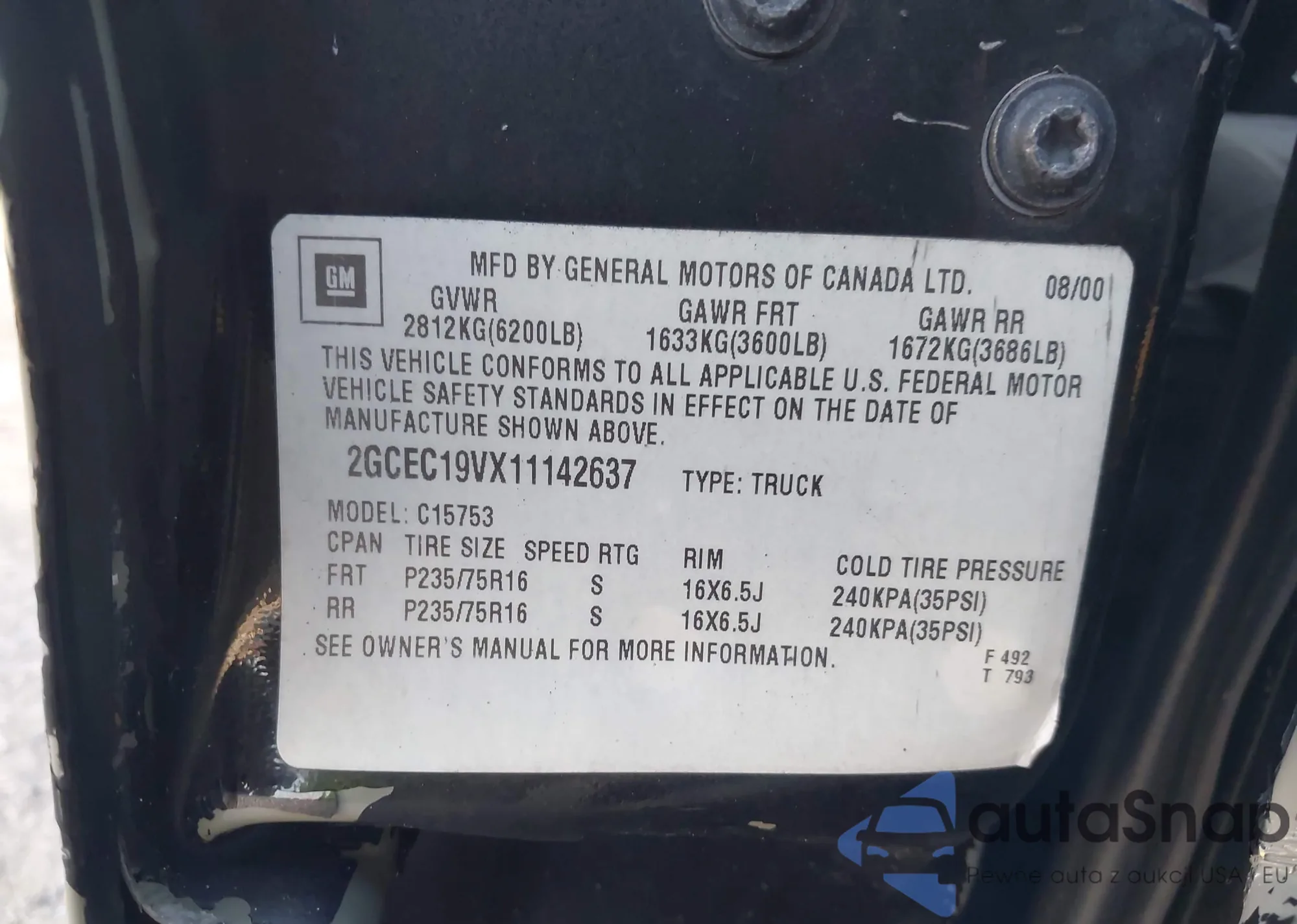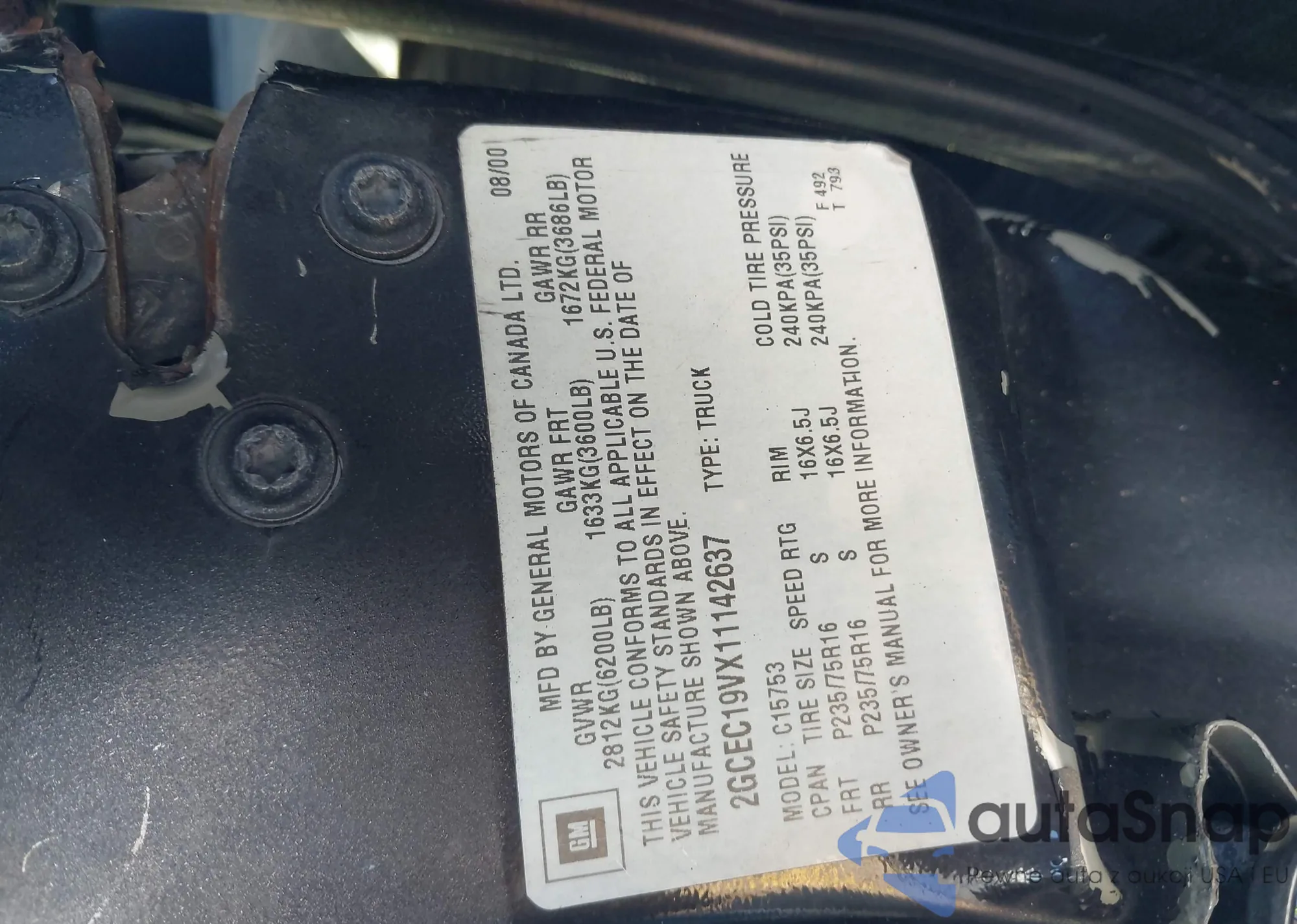 • VIN 2GCEC19VX11142637