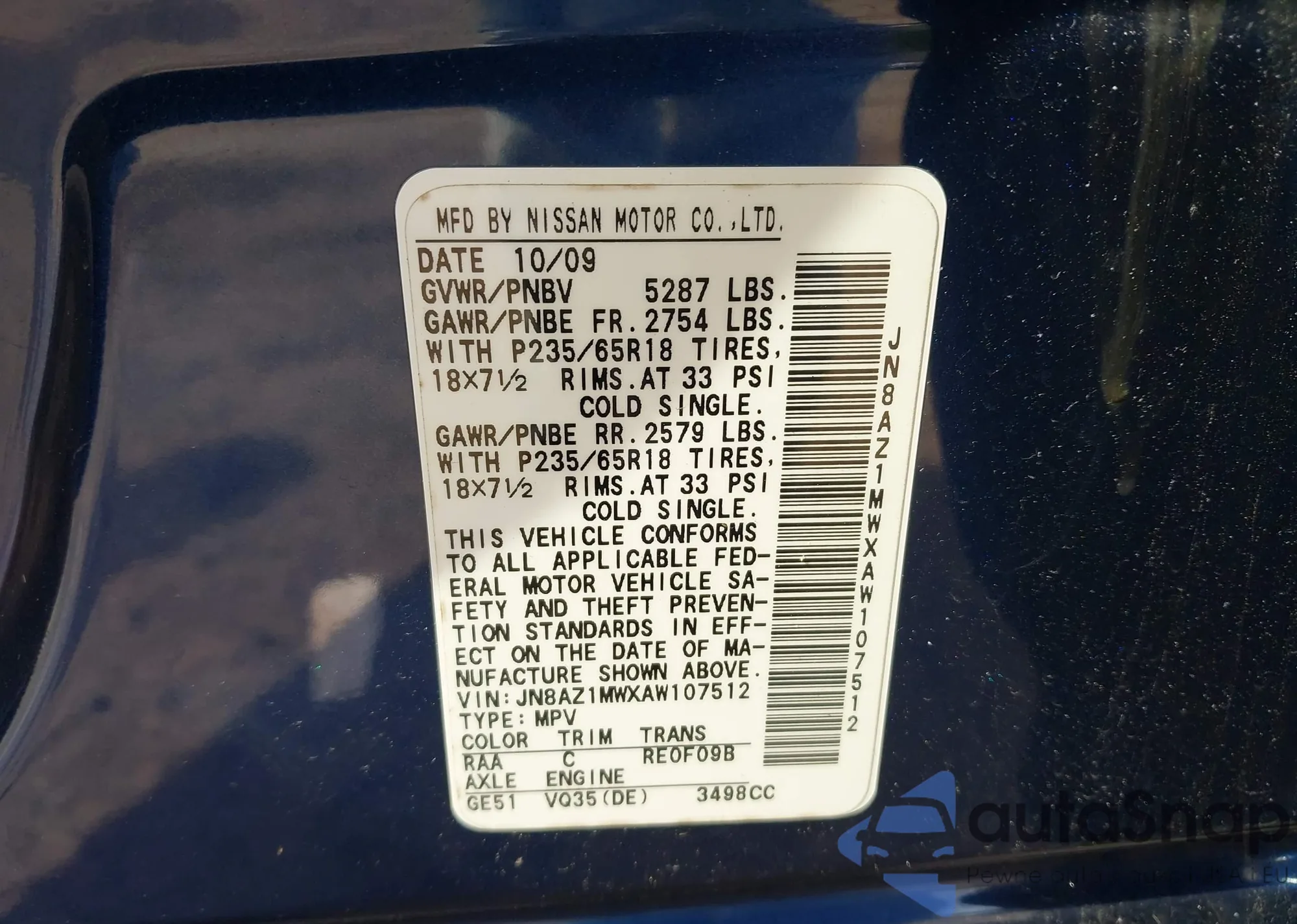 • VIN JN8AZ1MWXAW107512
