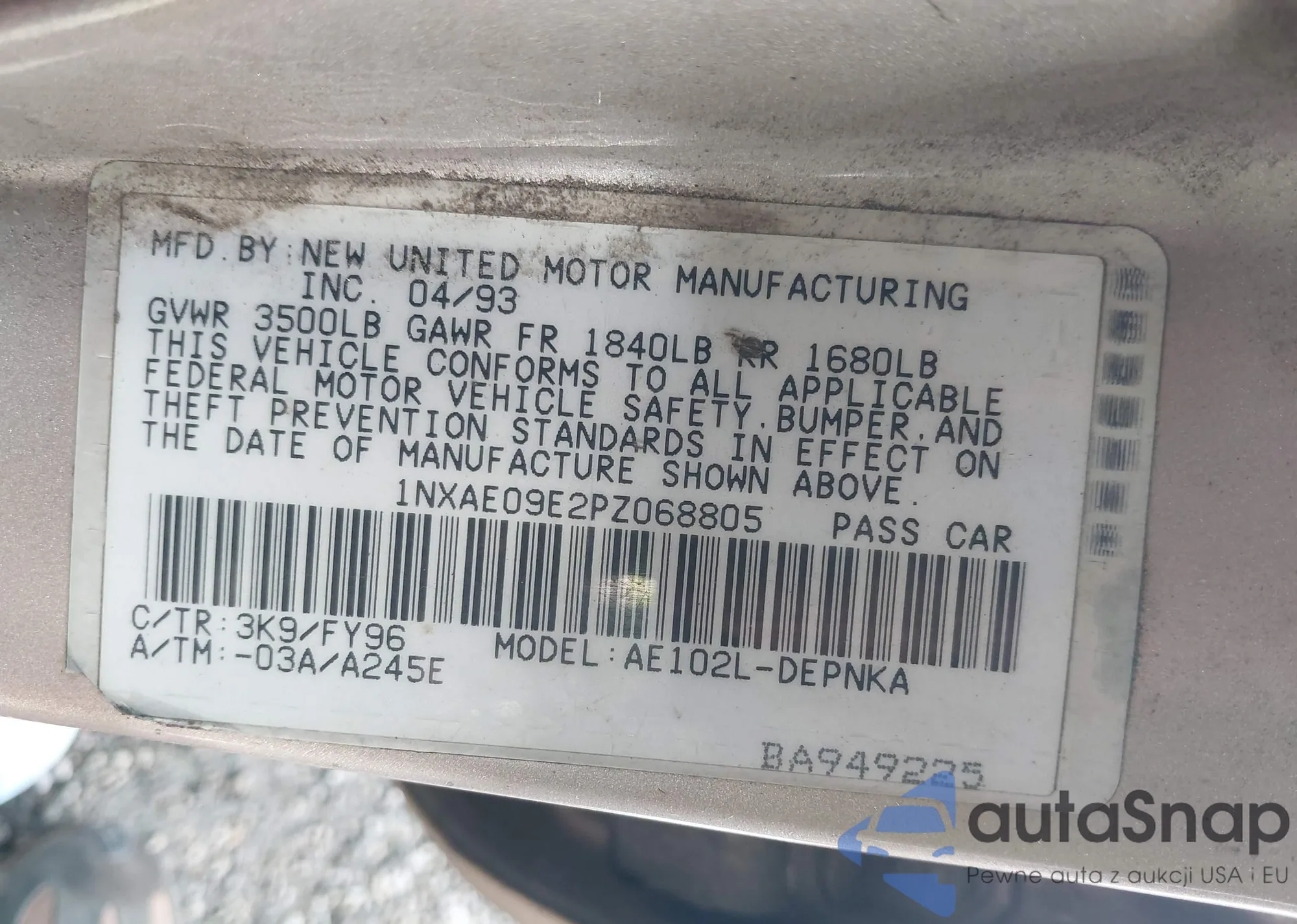 LOT: 39196538 VIN: 1NXAE09E2PZ068805