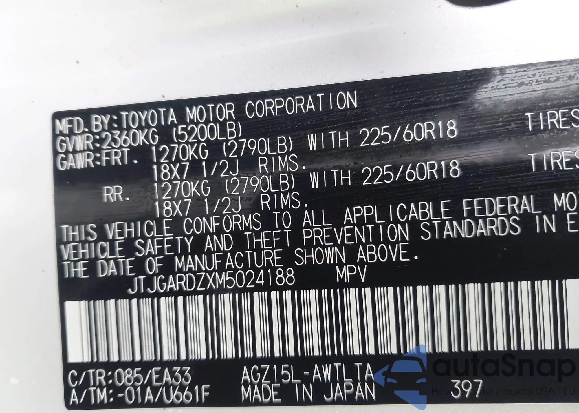 LOT: 43386454 VIN: JTJGARDZXM5024188