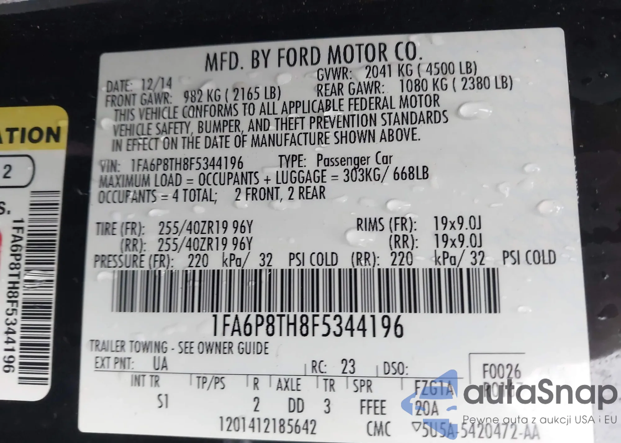 LOT: 43661754 VIN: JTDKN3DU6F0448227
