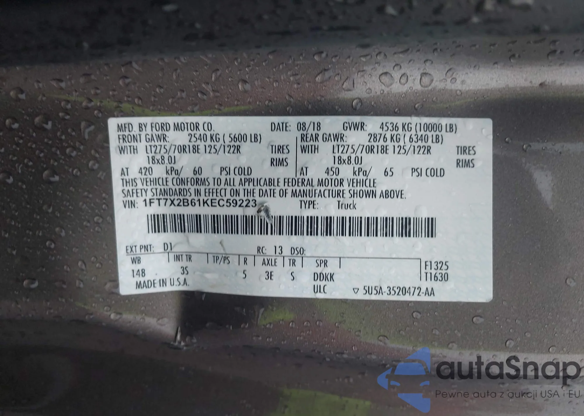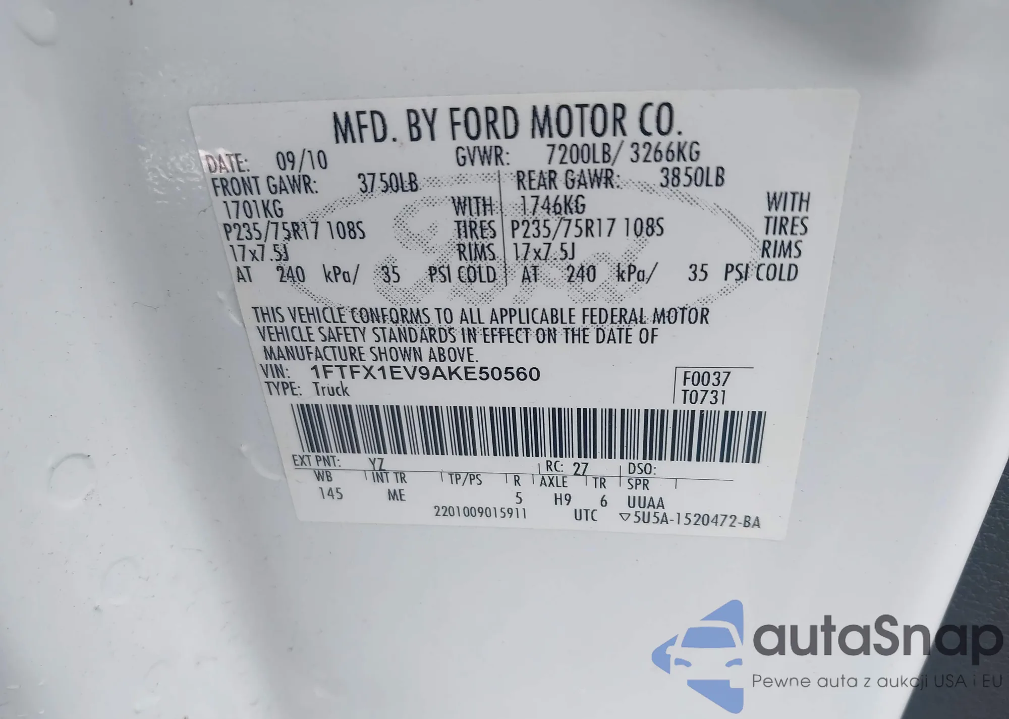 • VIN 1FTFX1EV9AKE50560