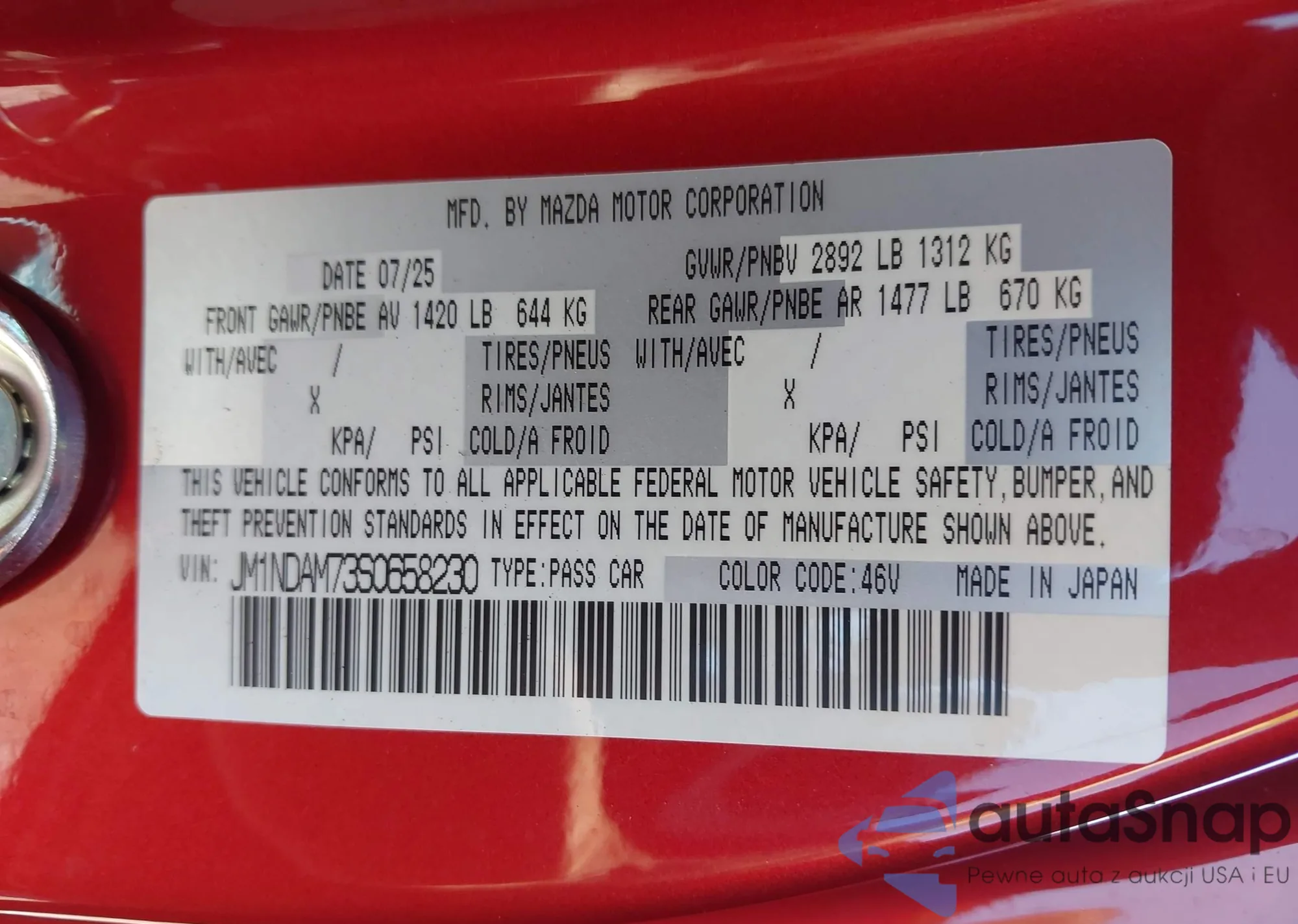LOT: 43593199 VIN: JM1BL1SF0A1249577