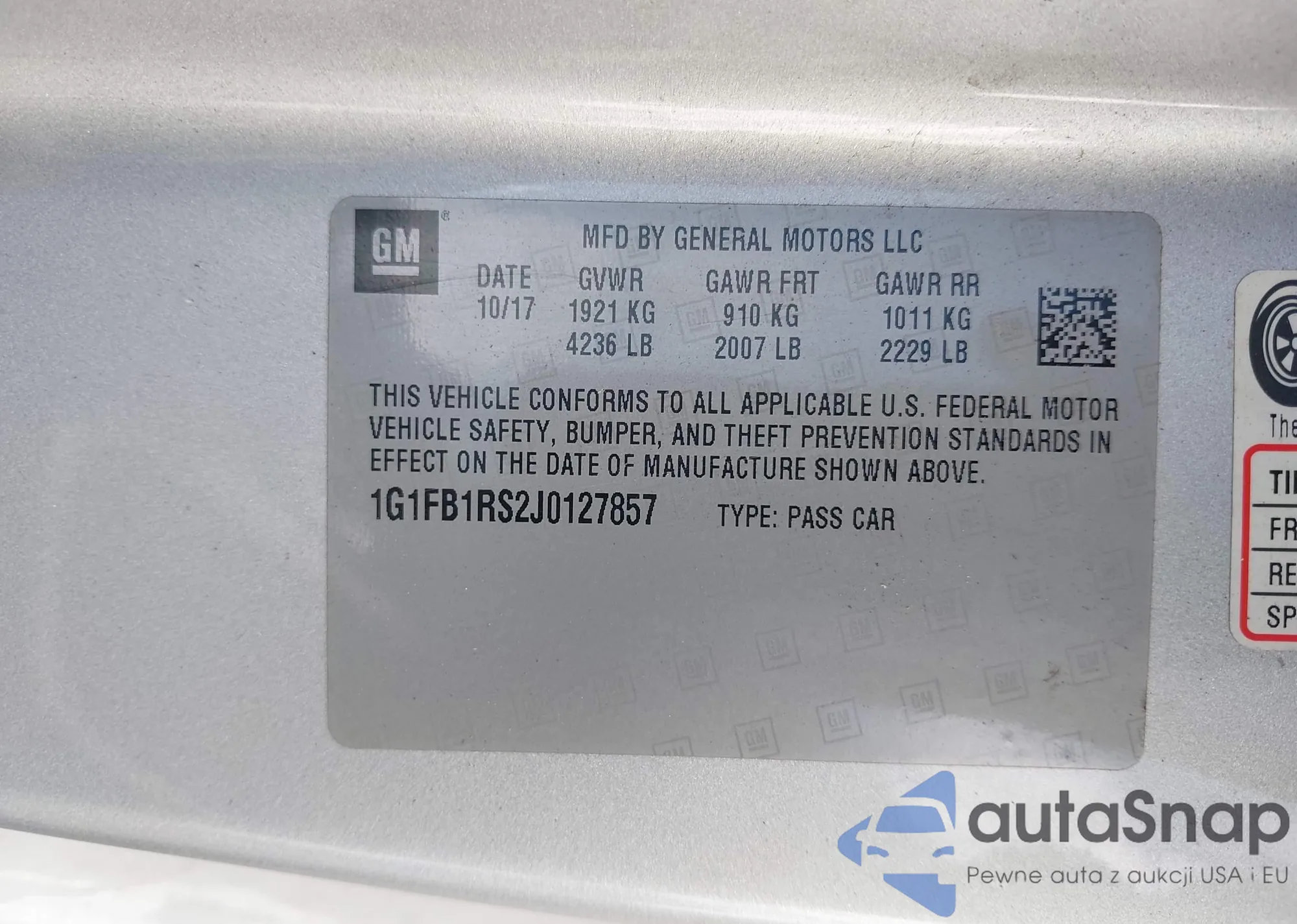 LOT: 43608498 VIN: 1G1FB1RS2J0127857