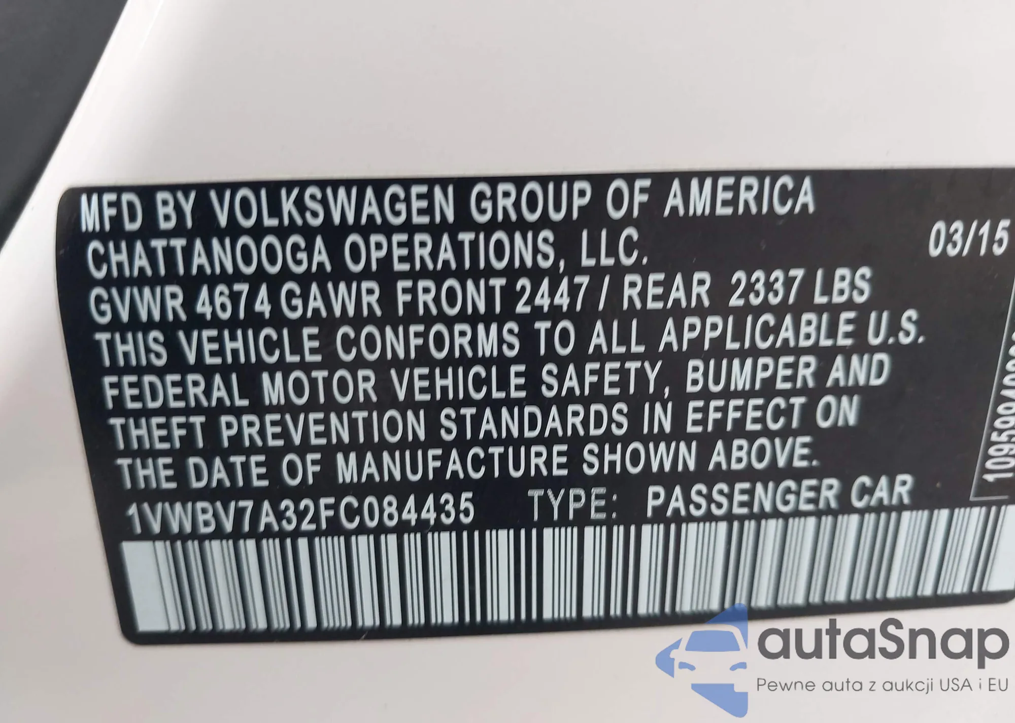 LOT: 43616374 VIN: 1VWBV7A32FC084435