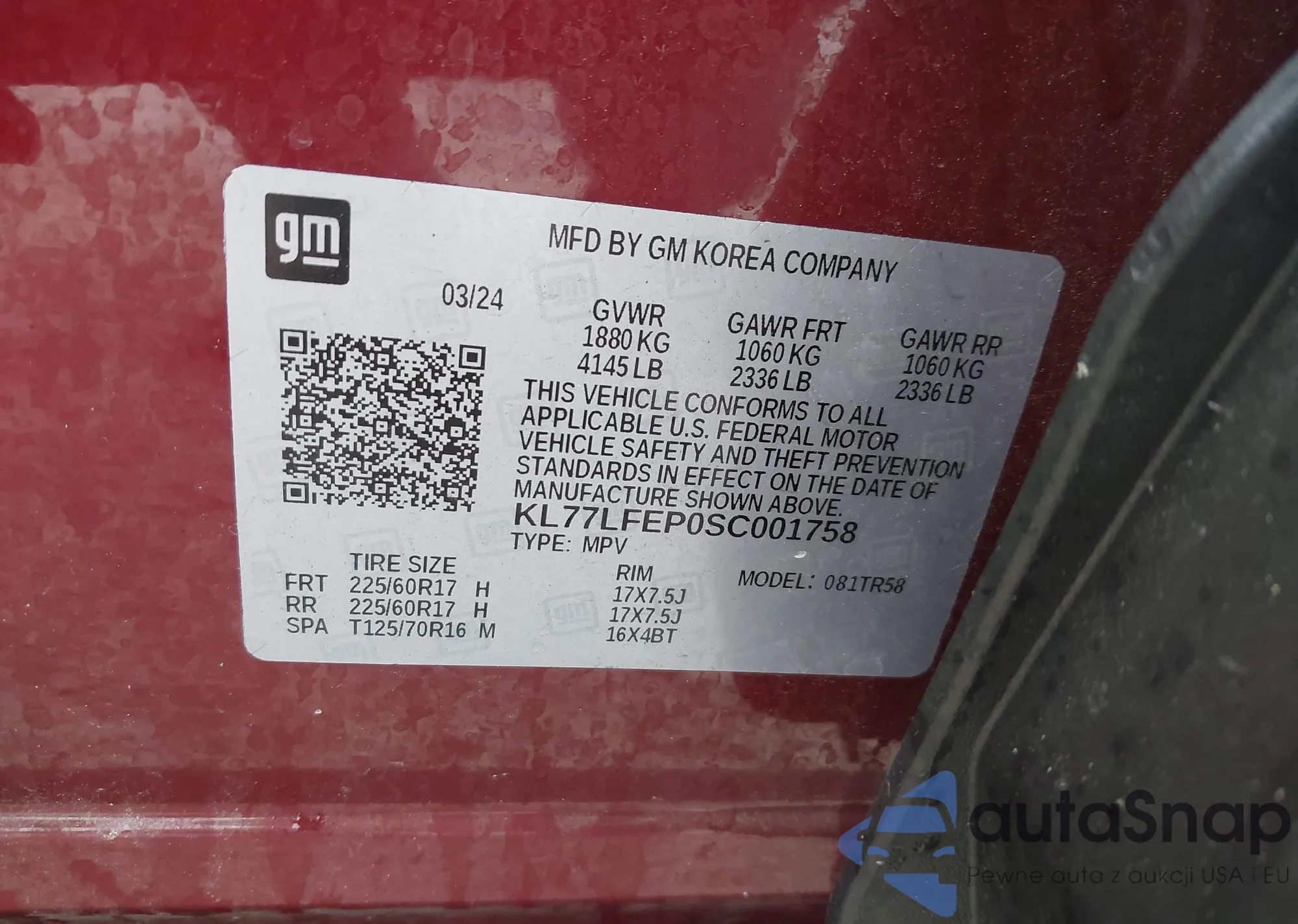 • VIN KL77LFEP0SC001758