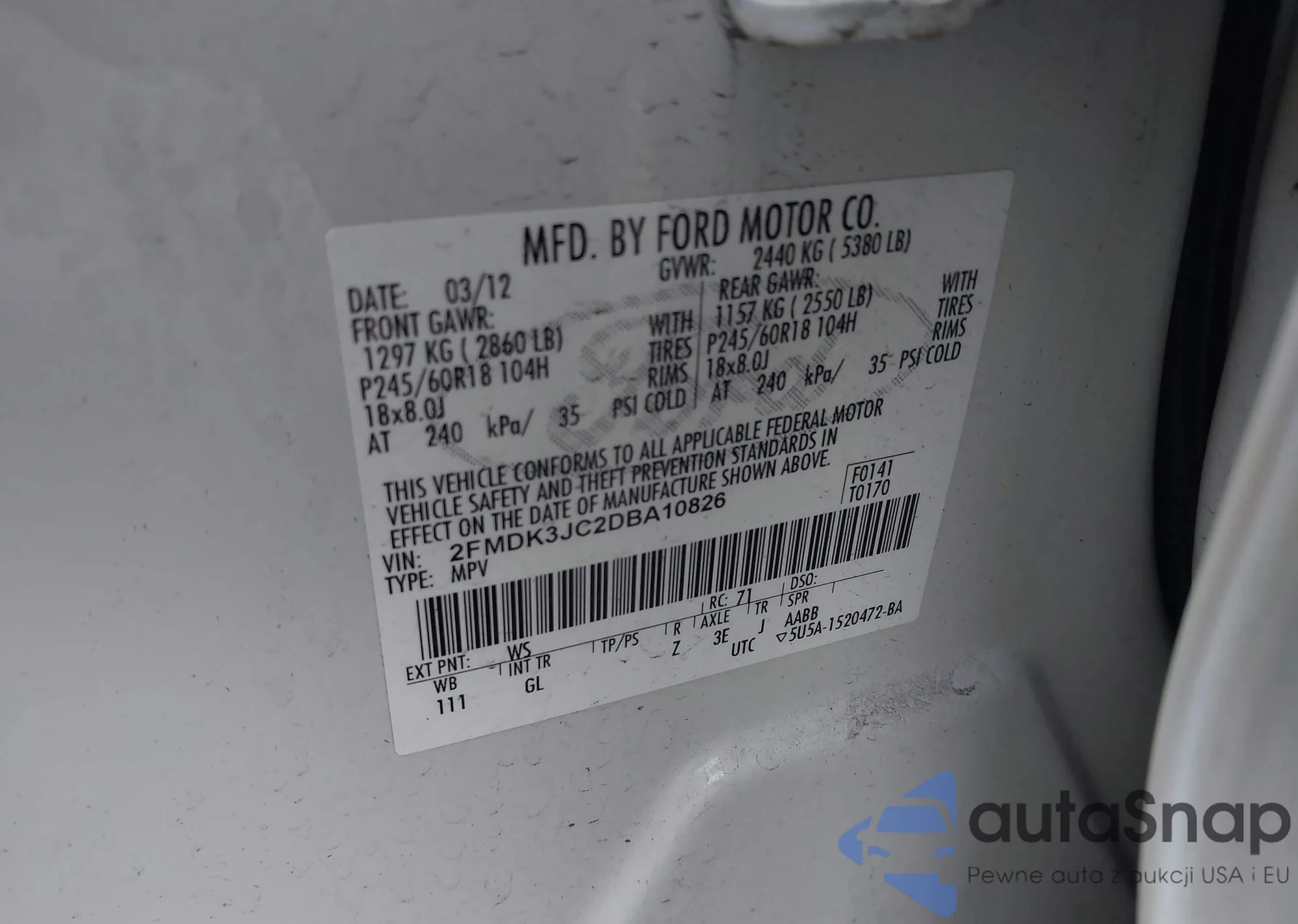 LOT: 43575241 VIN: 1FTFX1EV9AKE50560