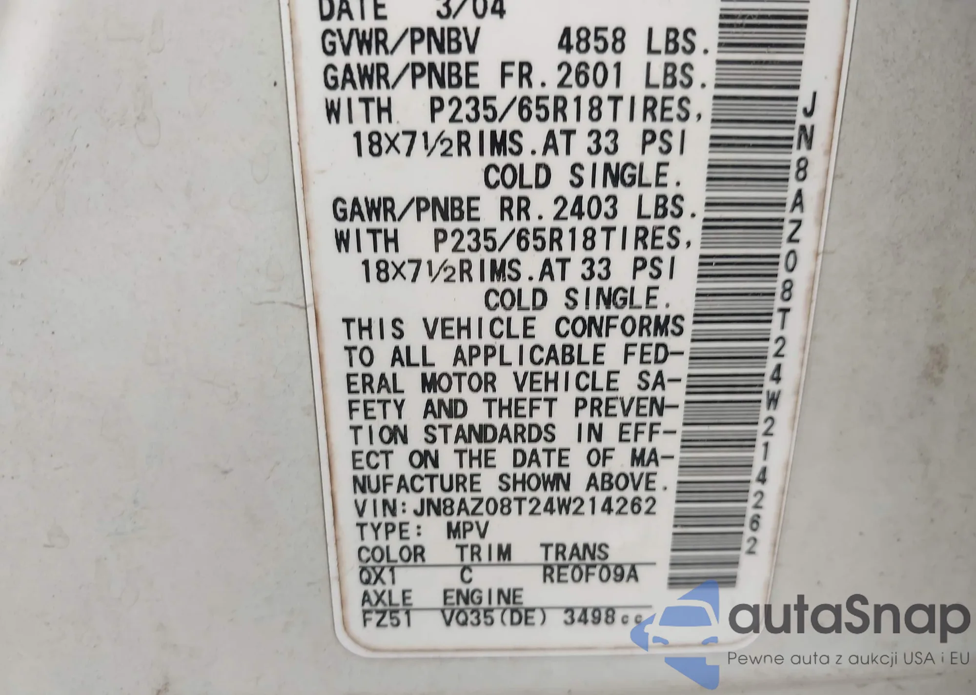 • VIN 5N1DL1FS5RC337150