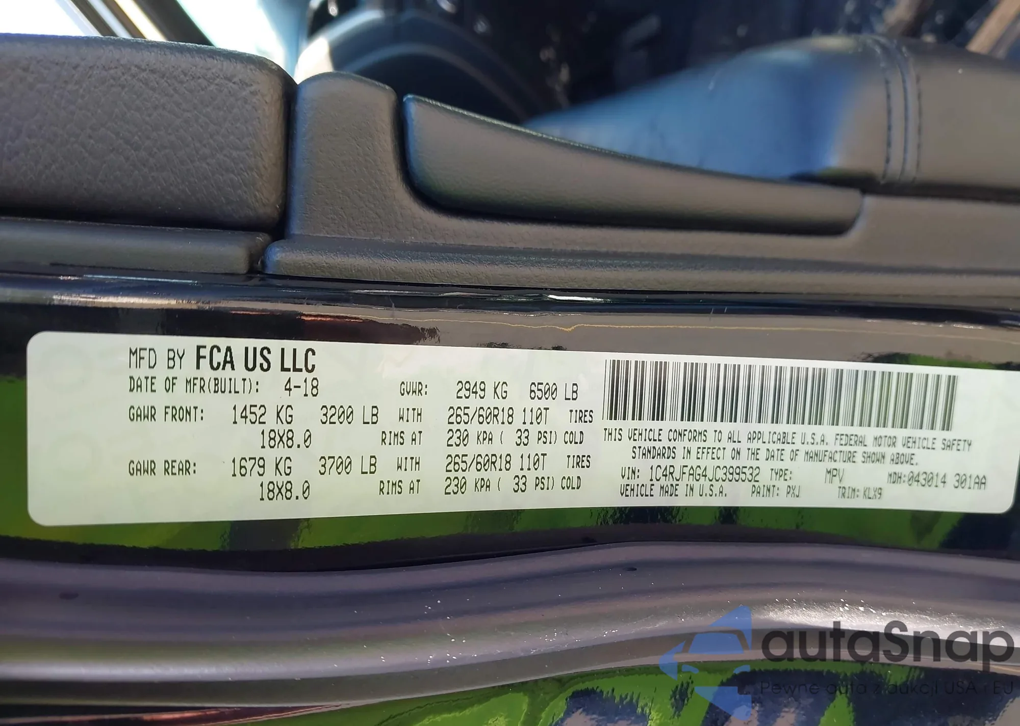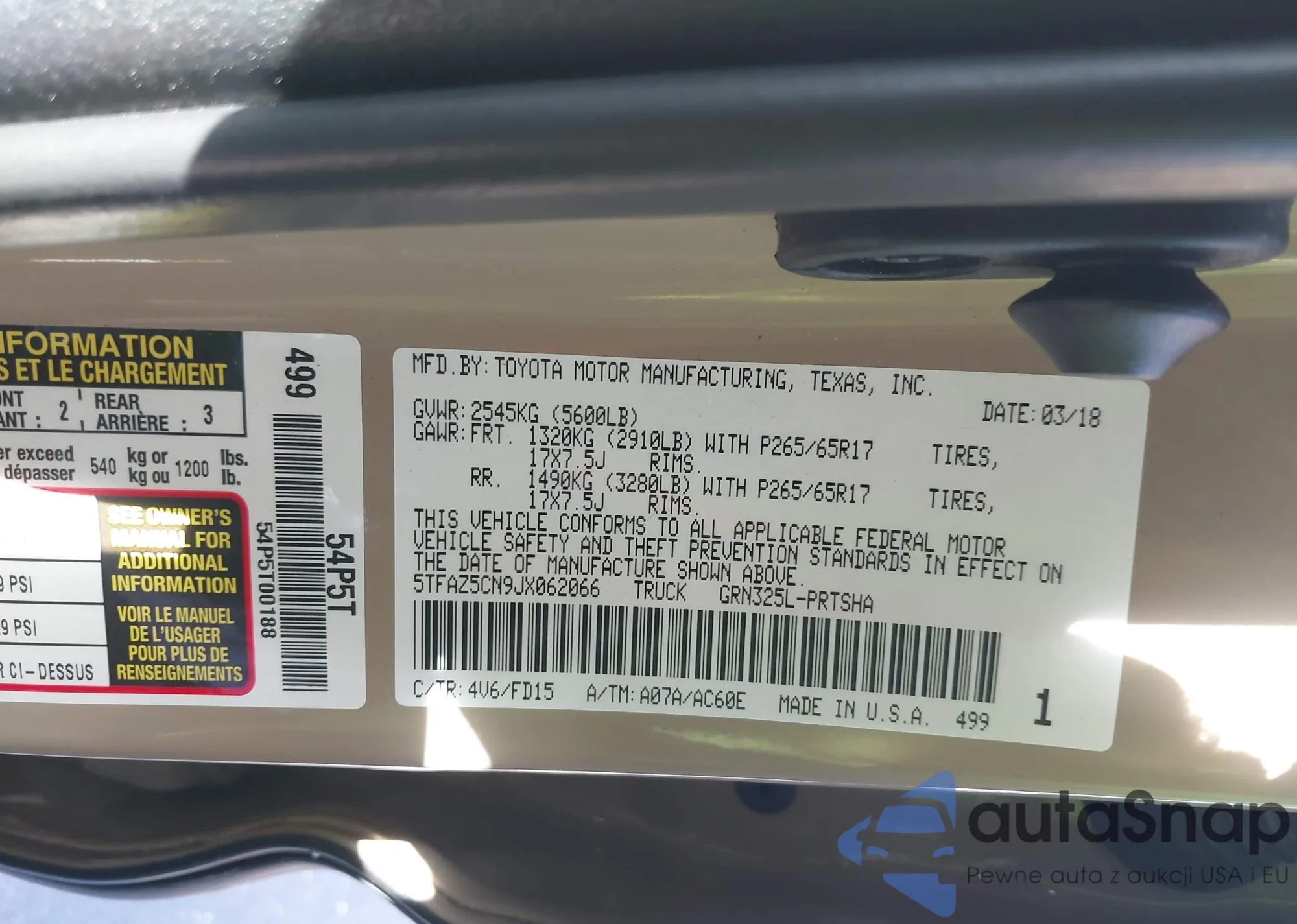 LOT: 43481718 VIN: 5TFAZ5CN9JX062066