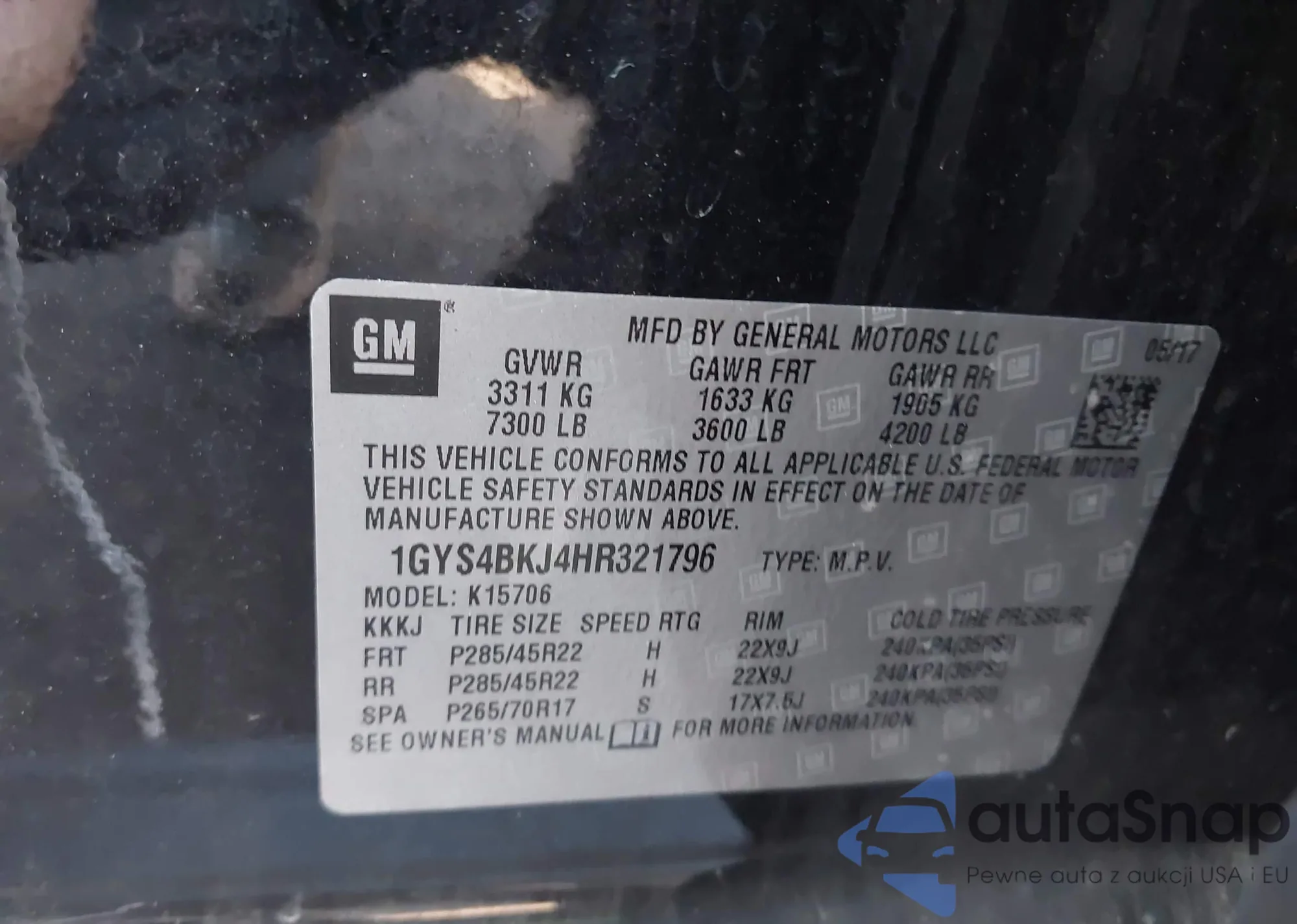 • VIN 1GYS4BKJ4HR321796