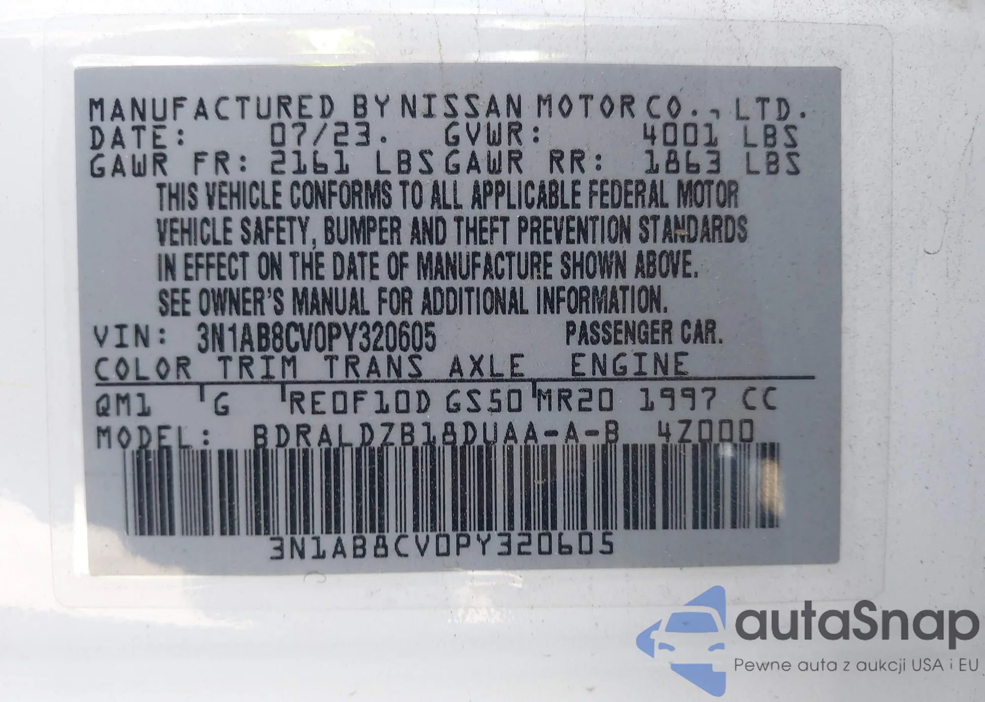 LOT: 43294858 VIN: 3N1AB8CV0PY320605