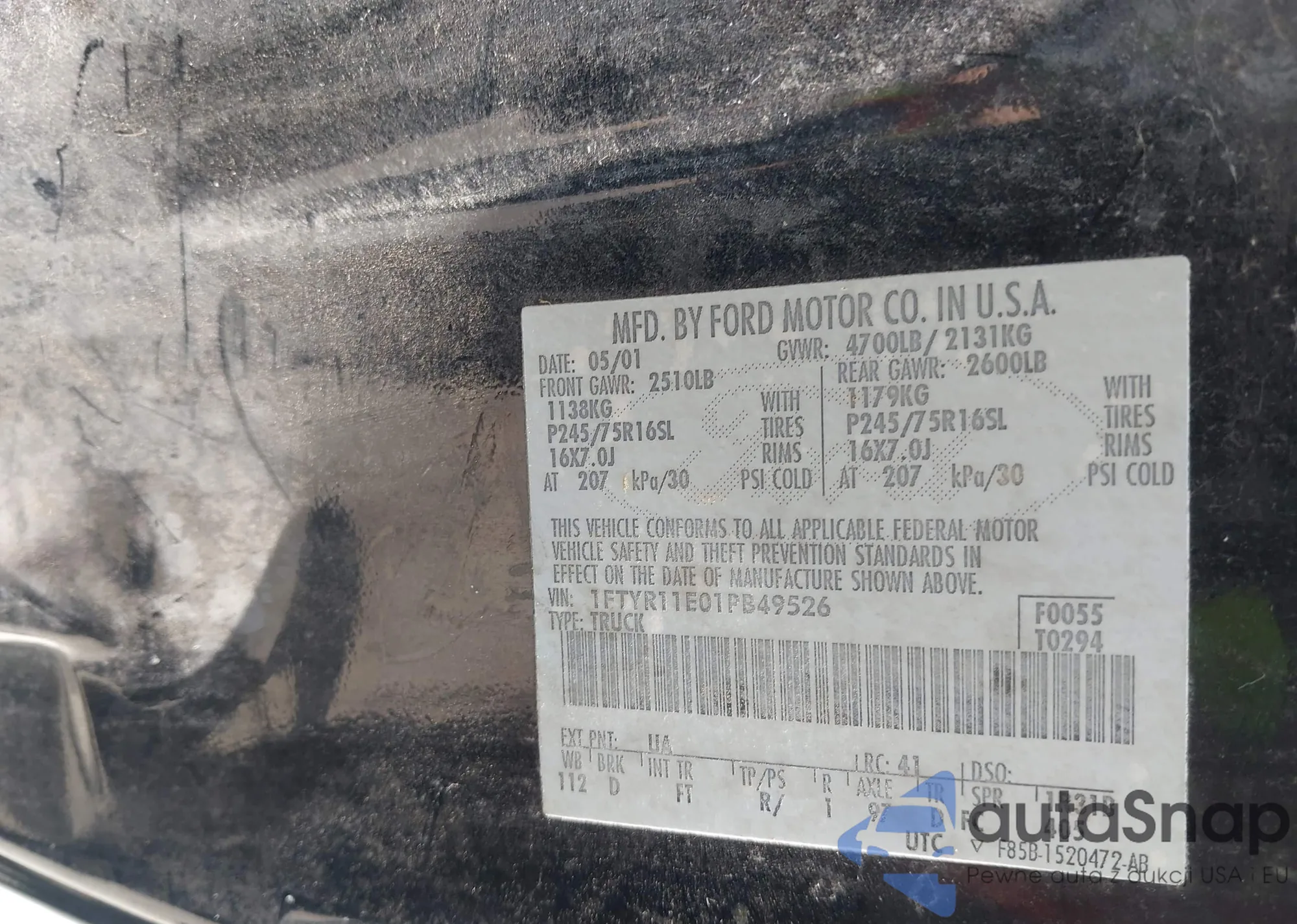 • VIN 1FTYR11E01PB49526