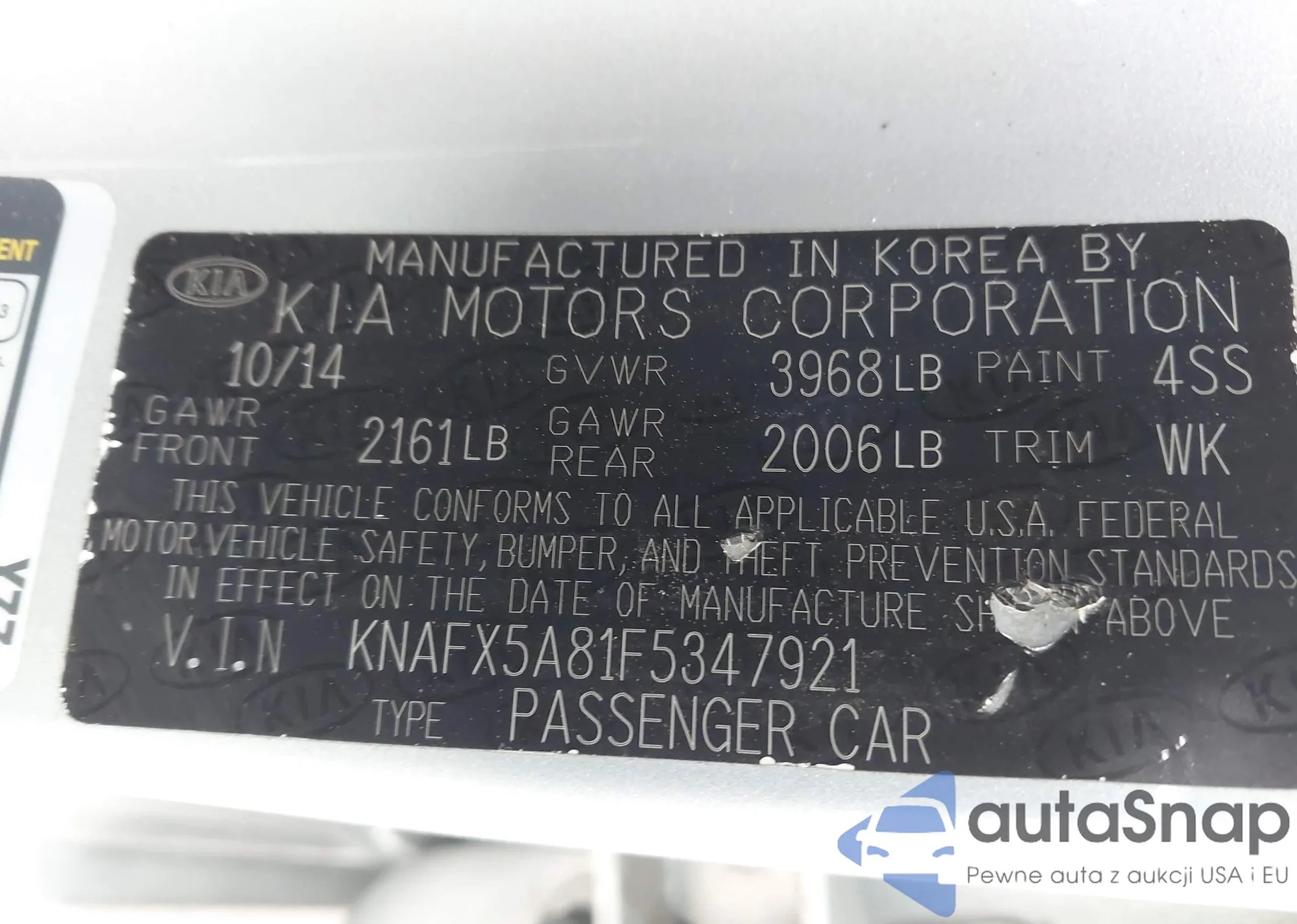 LOT: 43510895 VIN: KNAFX5A81F5347921