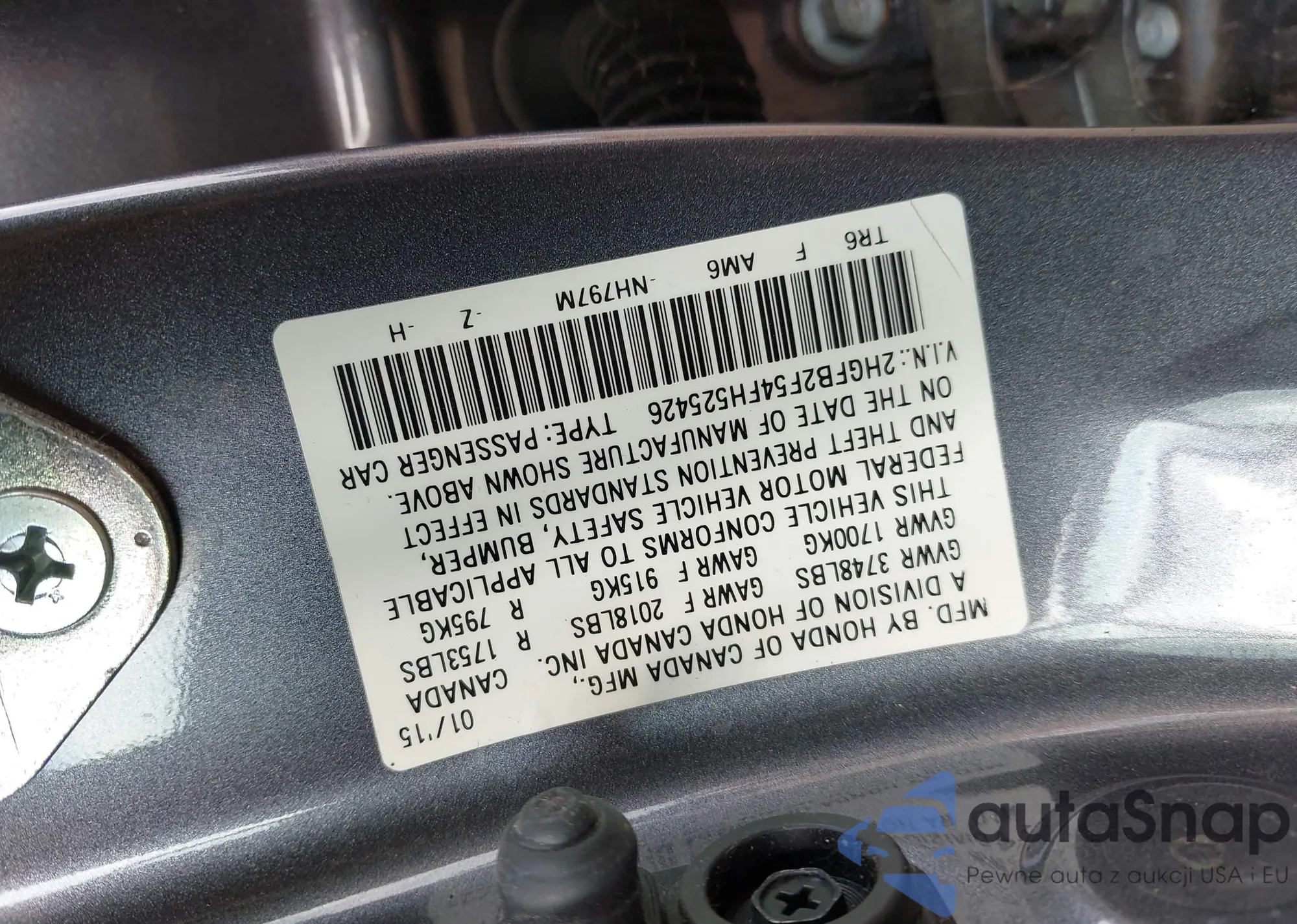LOT: 43524997 VIN: 2HGFB2F54FH525426