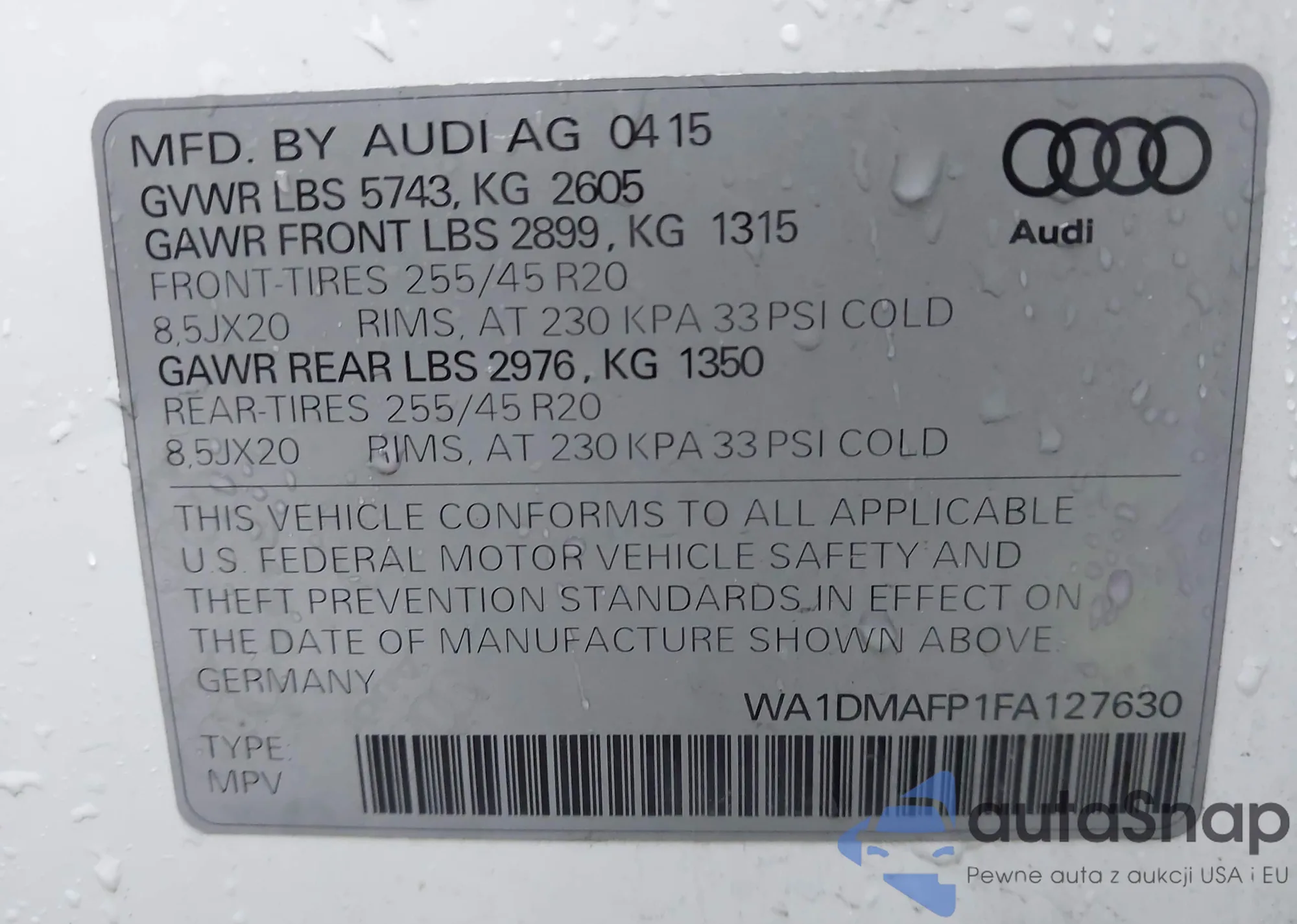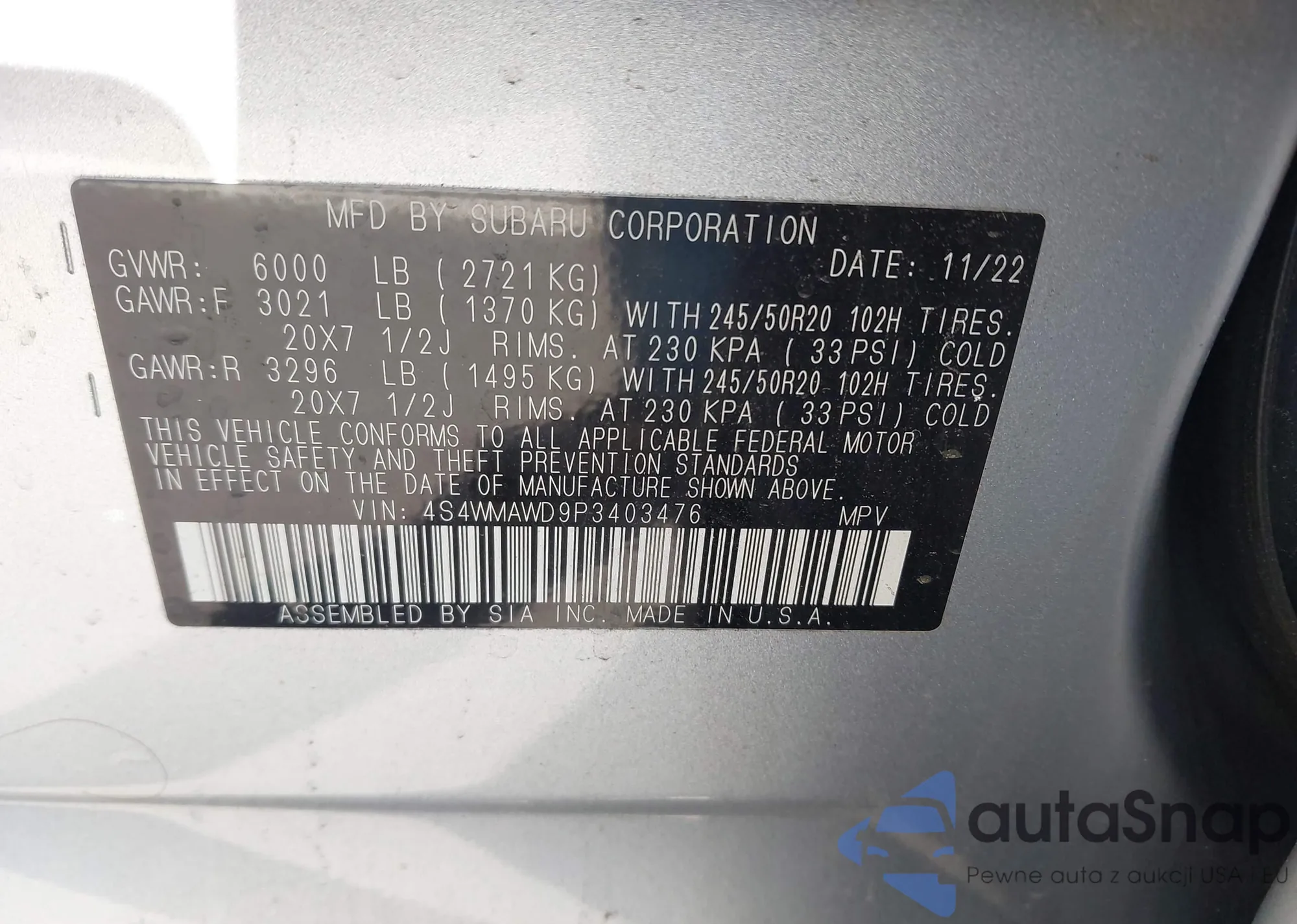 LOT: 43489478 VIN: 4S4WMAWD9P3403476