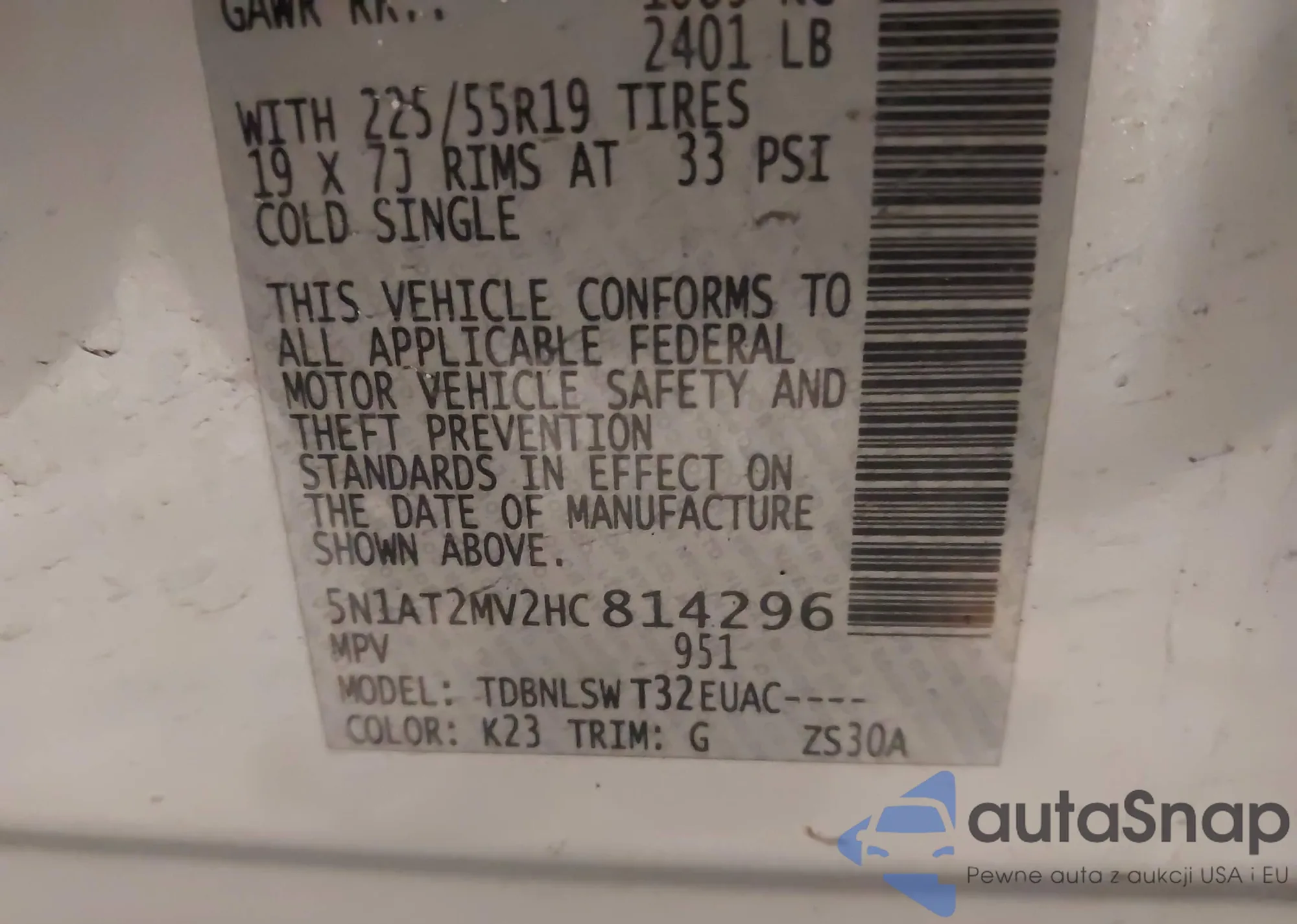 • VIN 5J8TB4H79JL005599