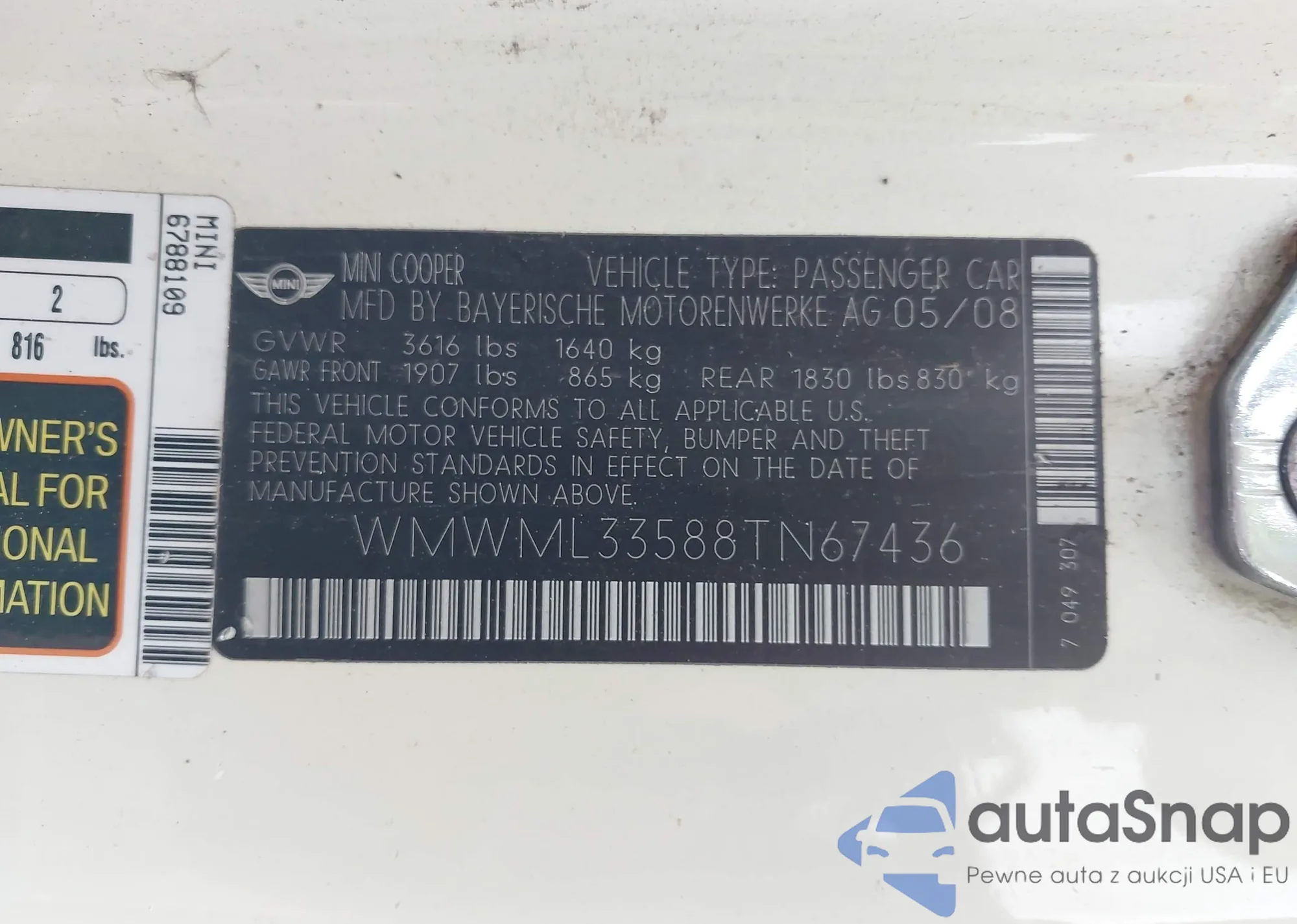 • VIN WMWML33588TN67436
