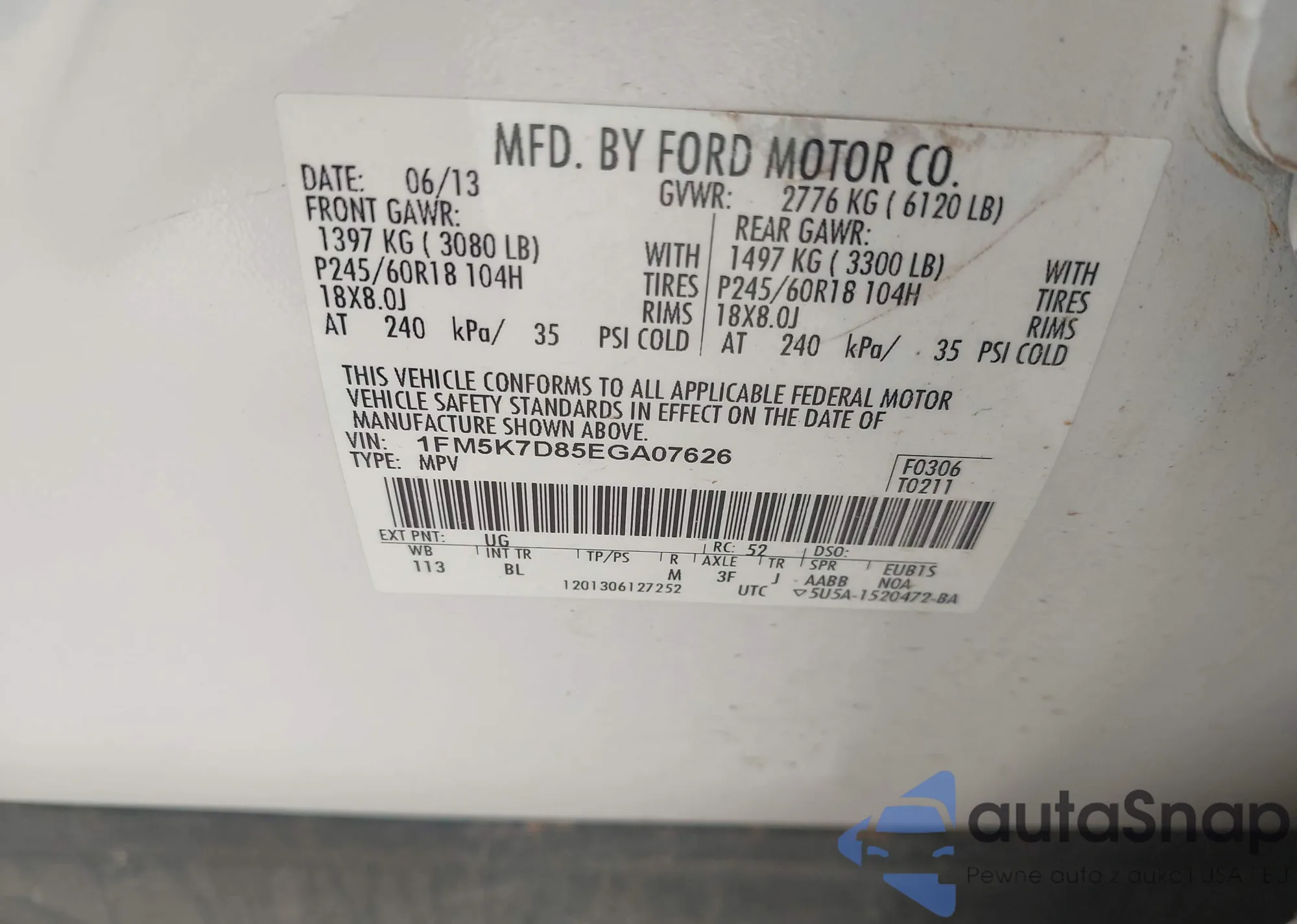 • VIN 1FM5K7D85EGA07626