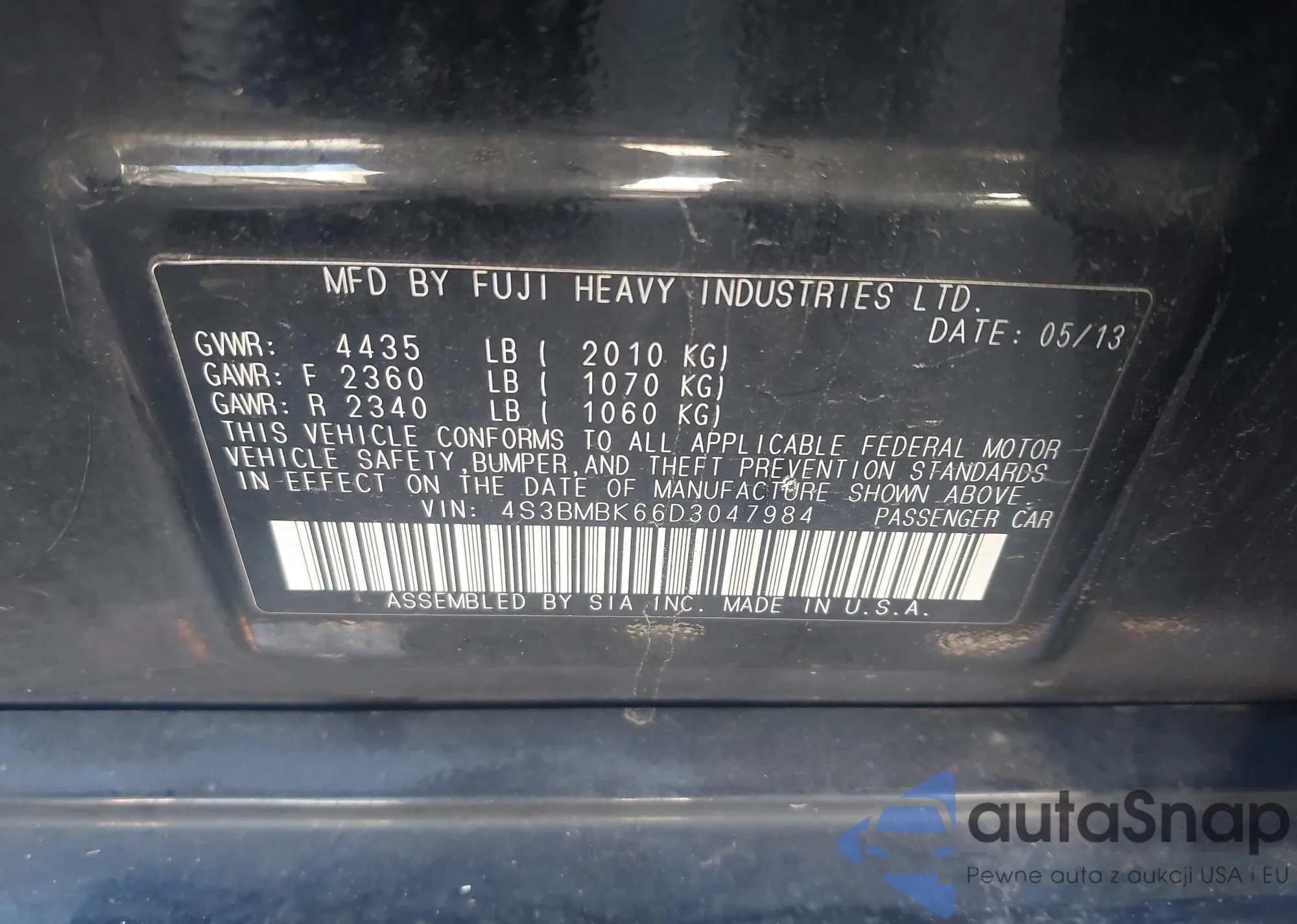 LOT: 43765517 VIN: 5XYKT4A66DG383923