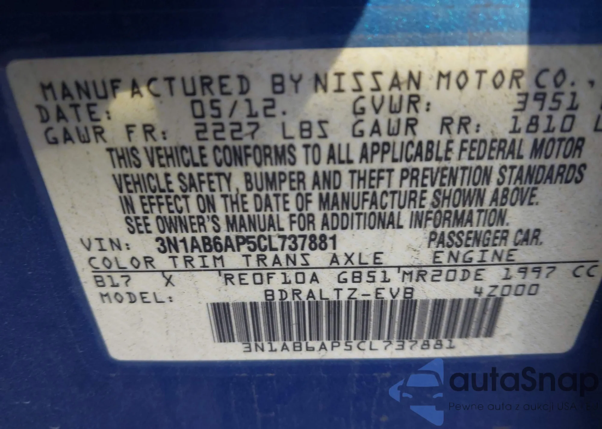 • VIN 3N1AB6AP5CL737881
