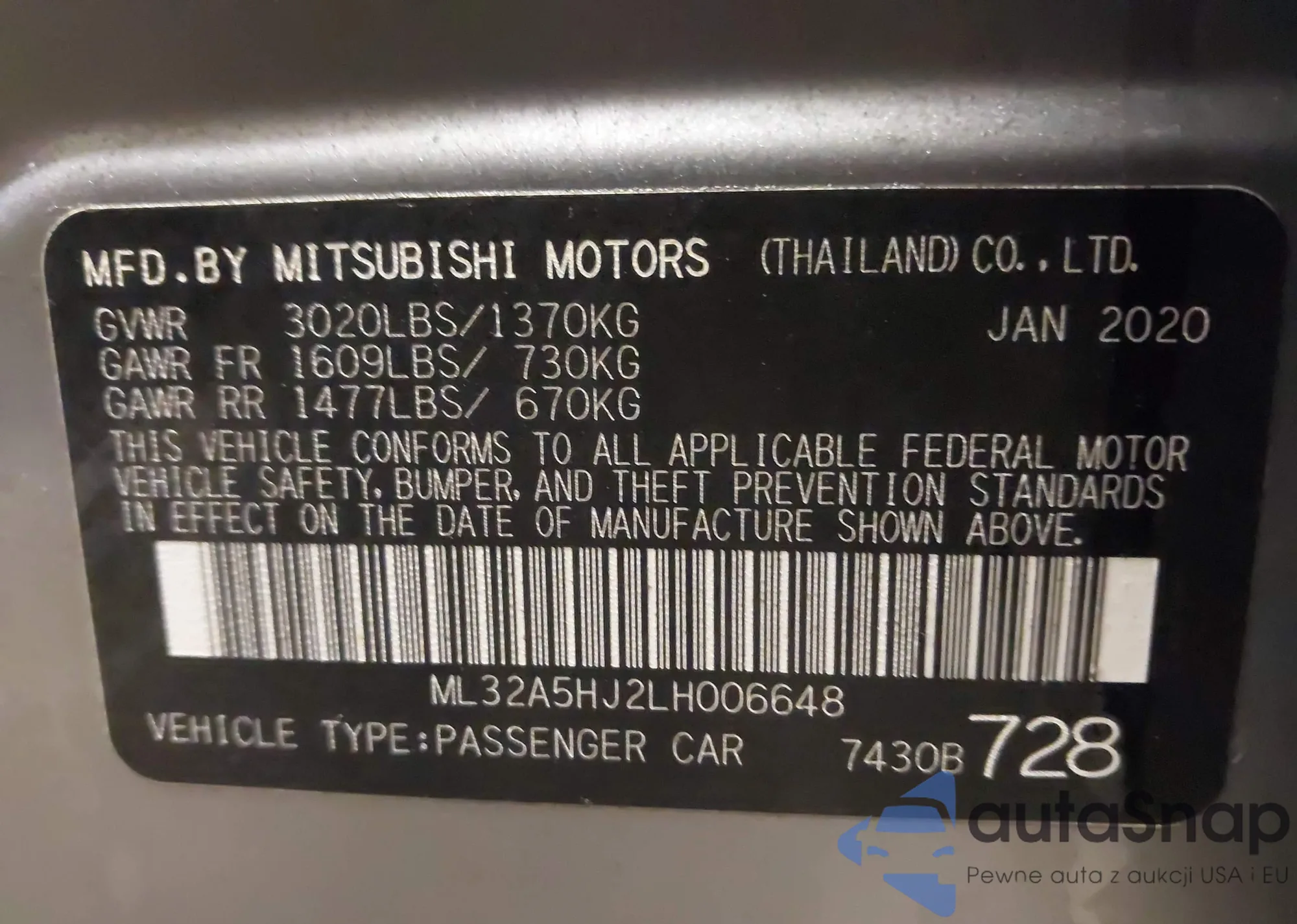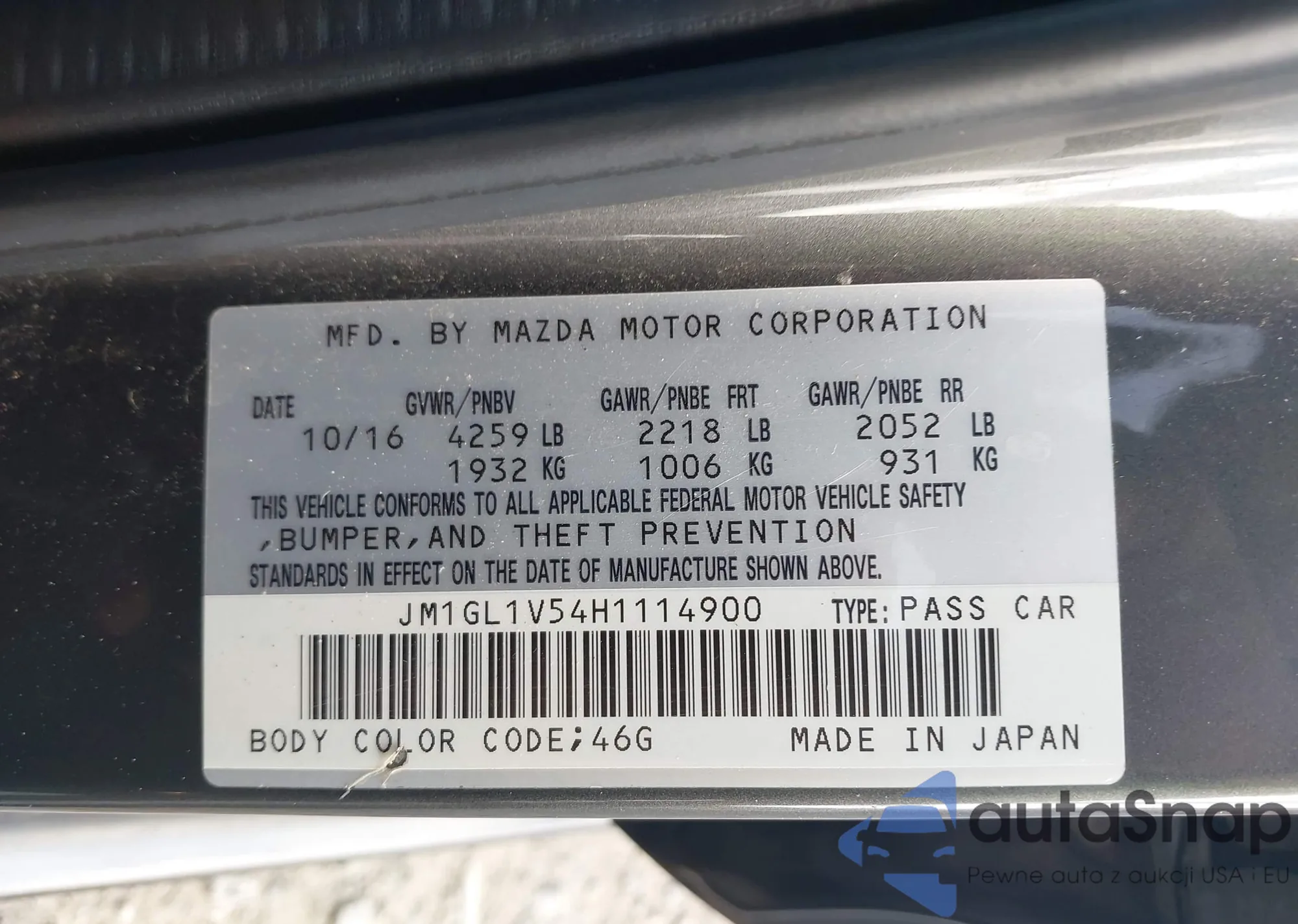 LOT: 43791840 VIN: JM1GL1V54H1114900