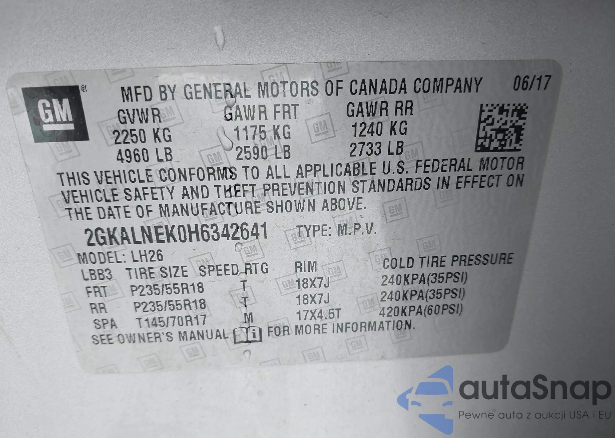 • VIN 2GKALNEK0H6342641