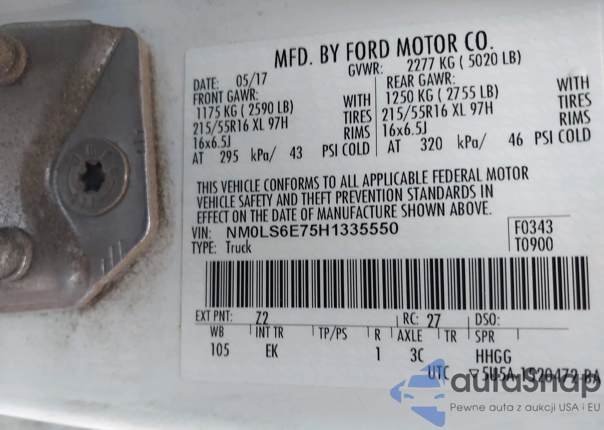 • VIN NM0LS6E75H1335550