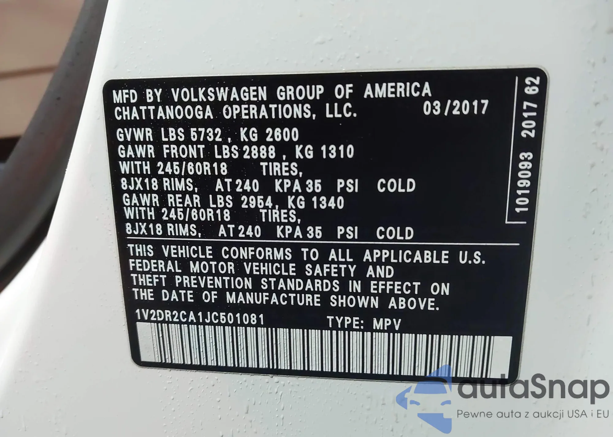 • VIN 1V2DR2CA1JC501081