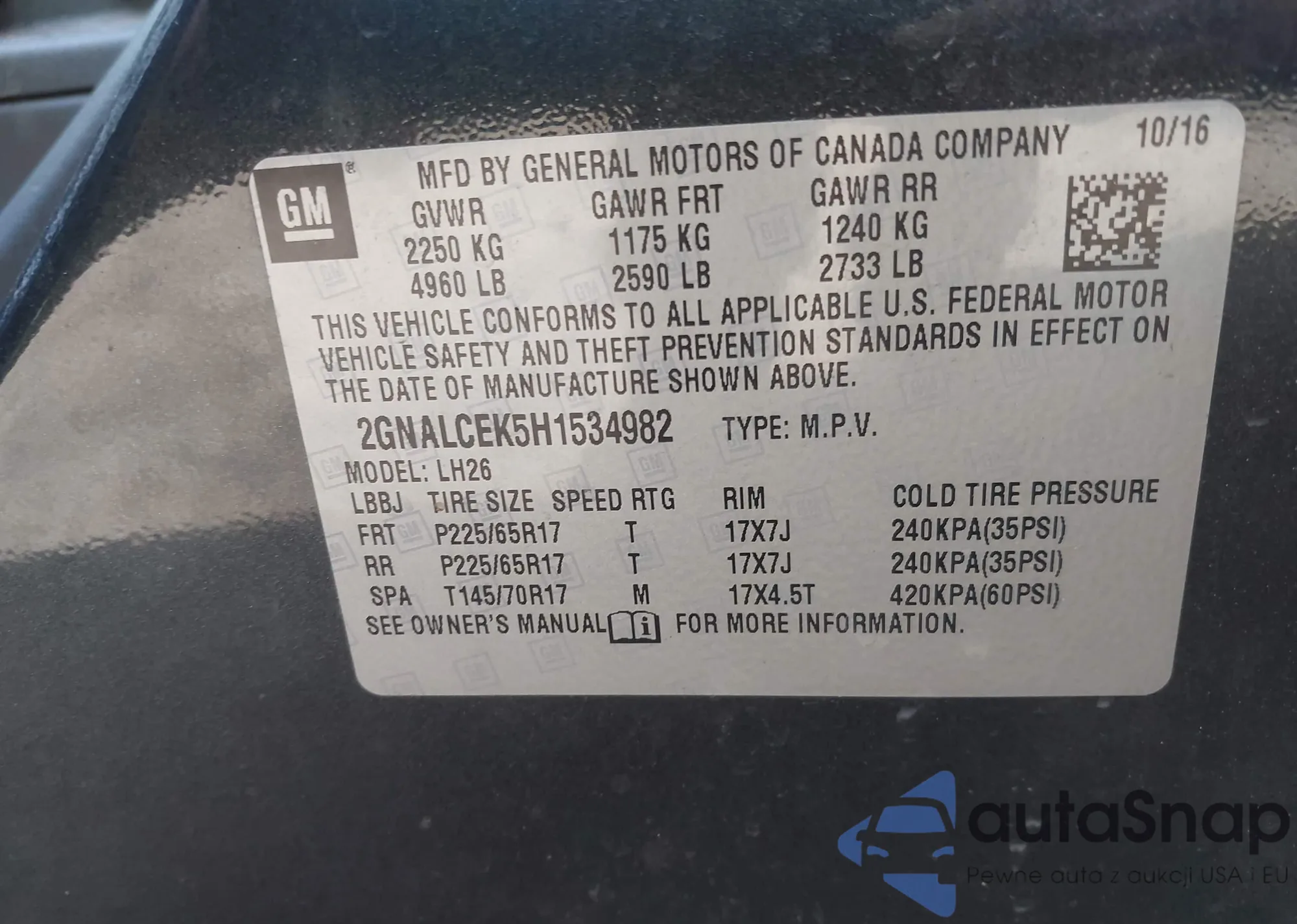 • VIN 2GNALCEK5H1534982
