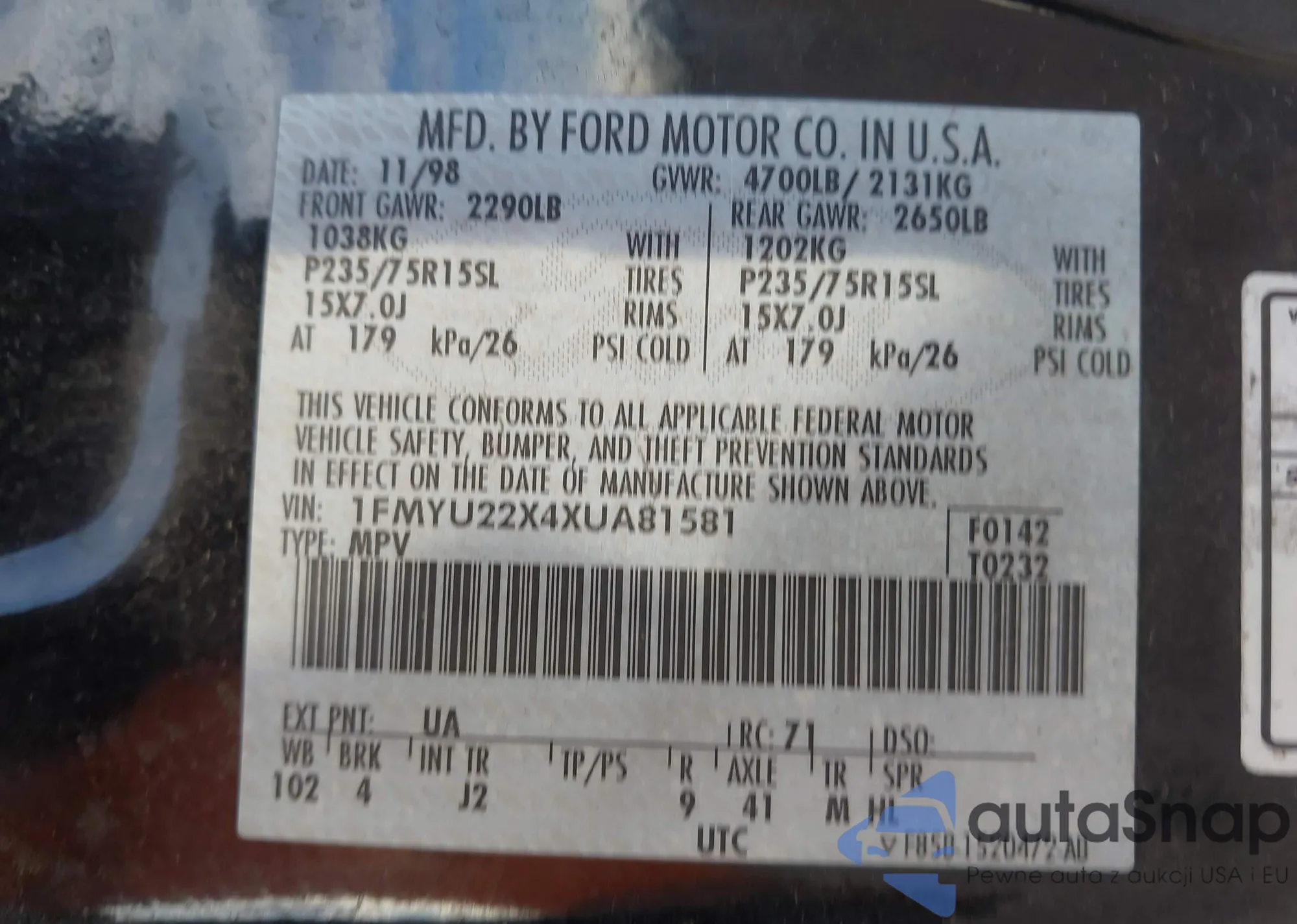• VIN 1FMYU22X4XUA81581