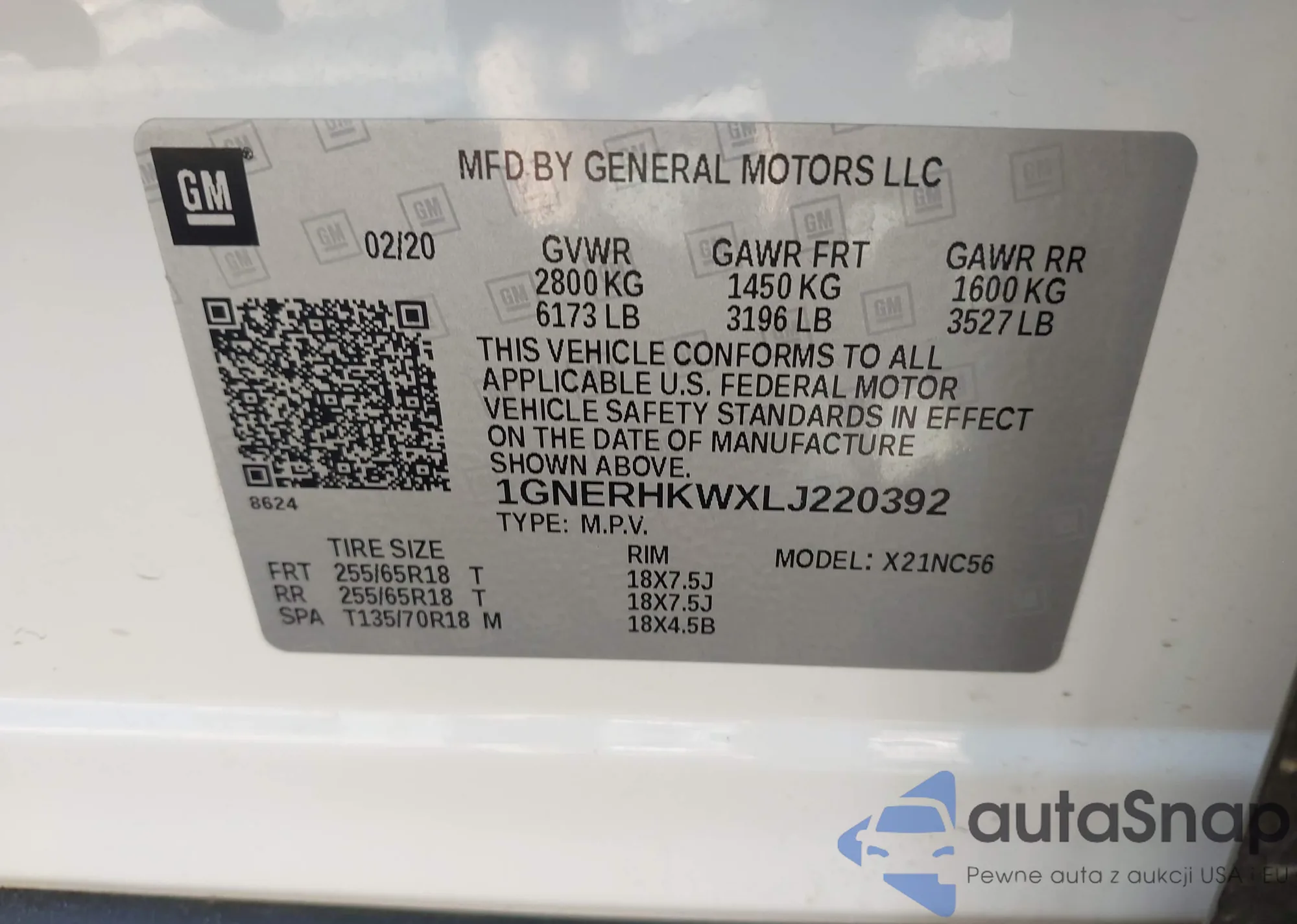 LOT: 43385315 VIN: 1GNERHKWXLJ220392