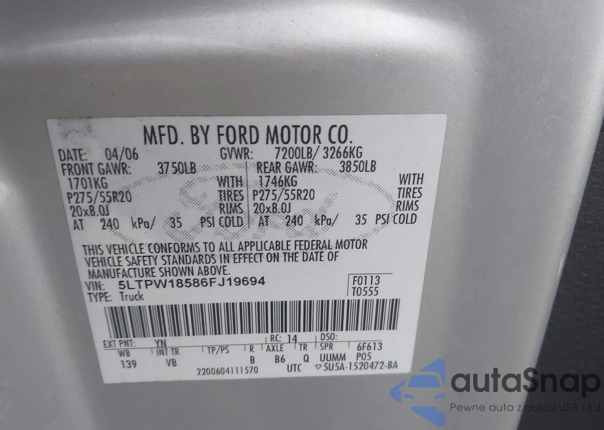 • VIN 1FTMF1CP6JFB08636