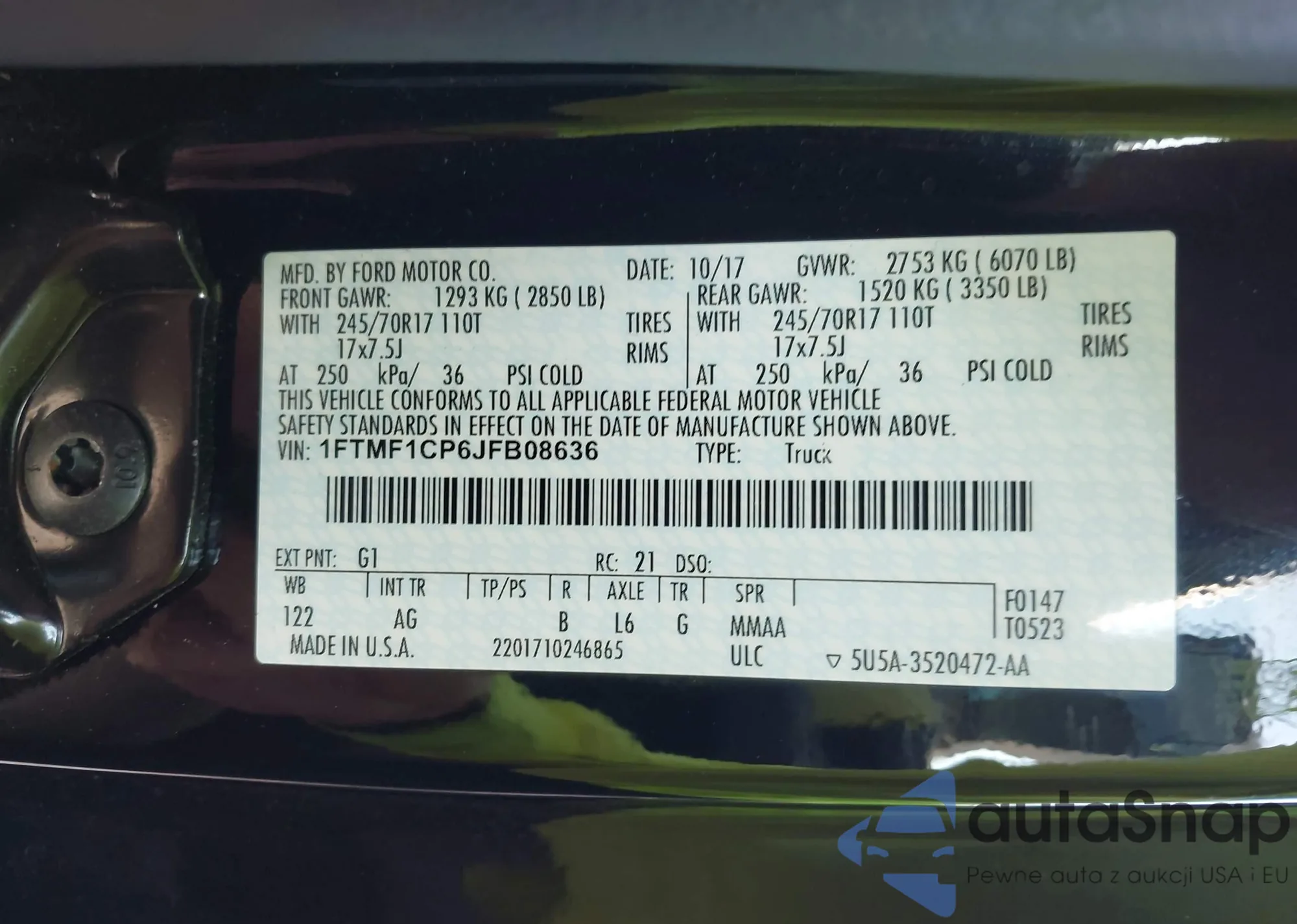 LOT: 43757510 VIN: 1FTMF1CP6JFB08636