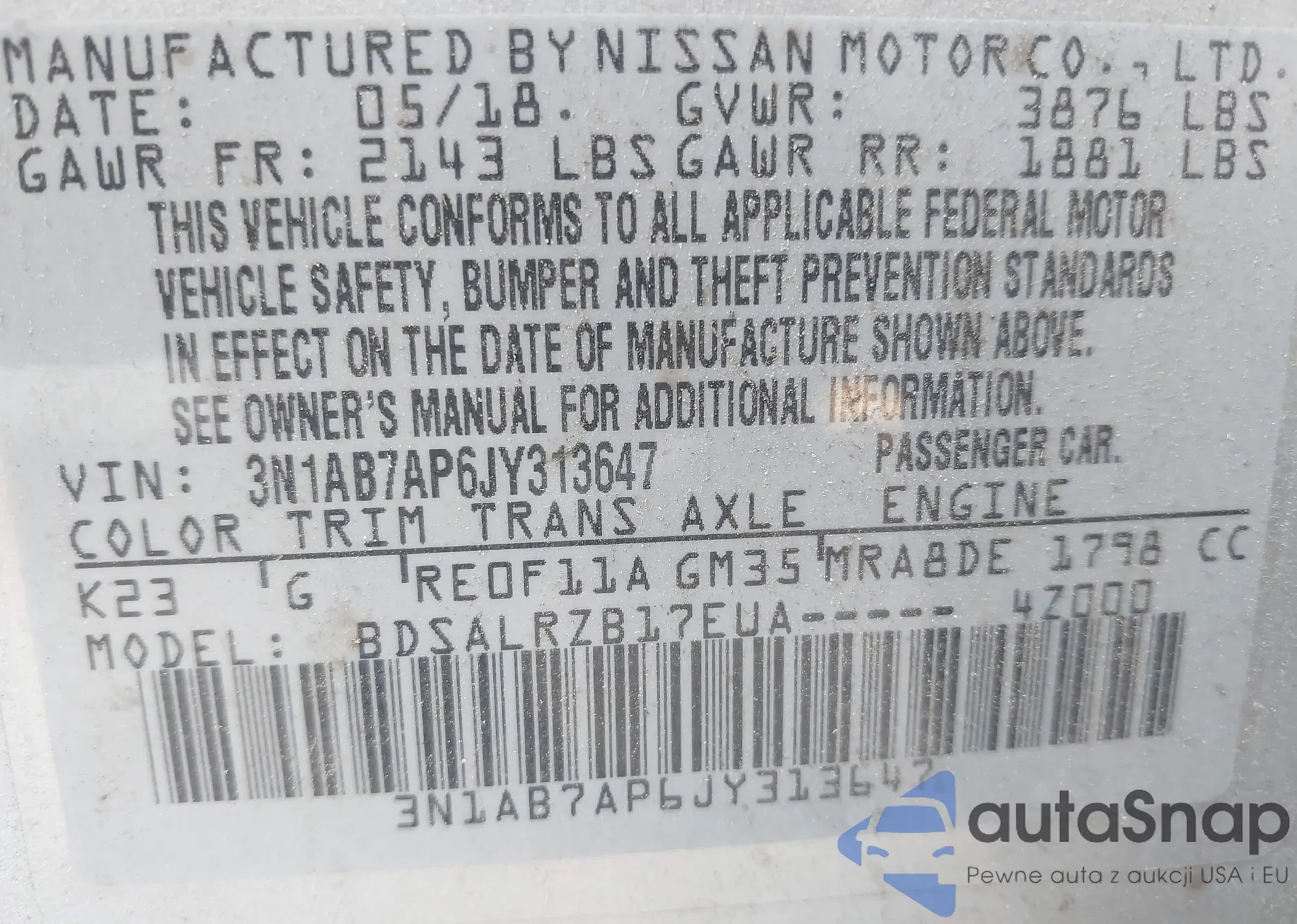 • VIN 3N1AB7AP6JY313647