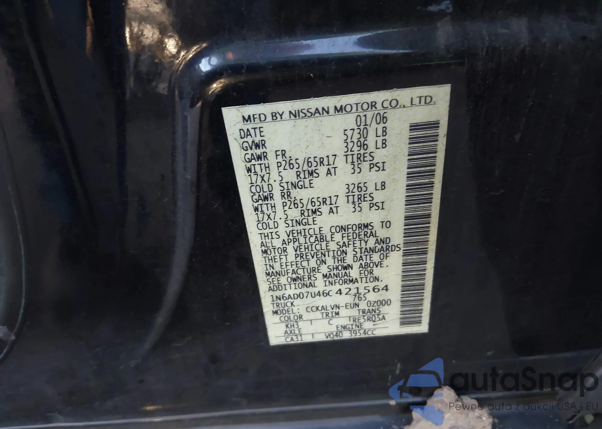 • VIN 1N4AA6AP0GC405693