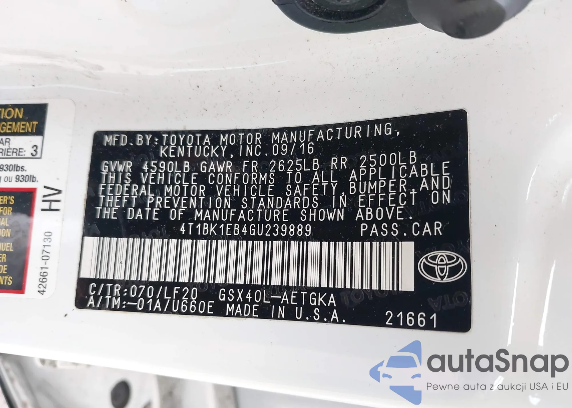 • VIN 4T1BK1EB4GU239889