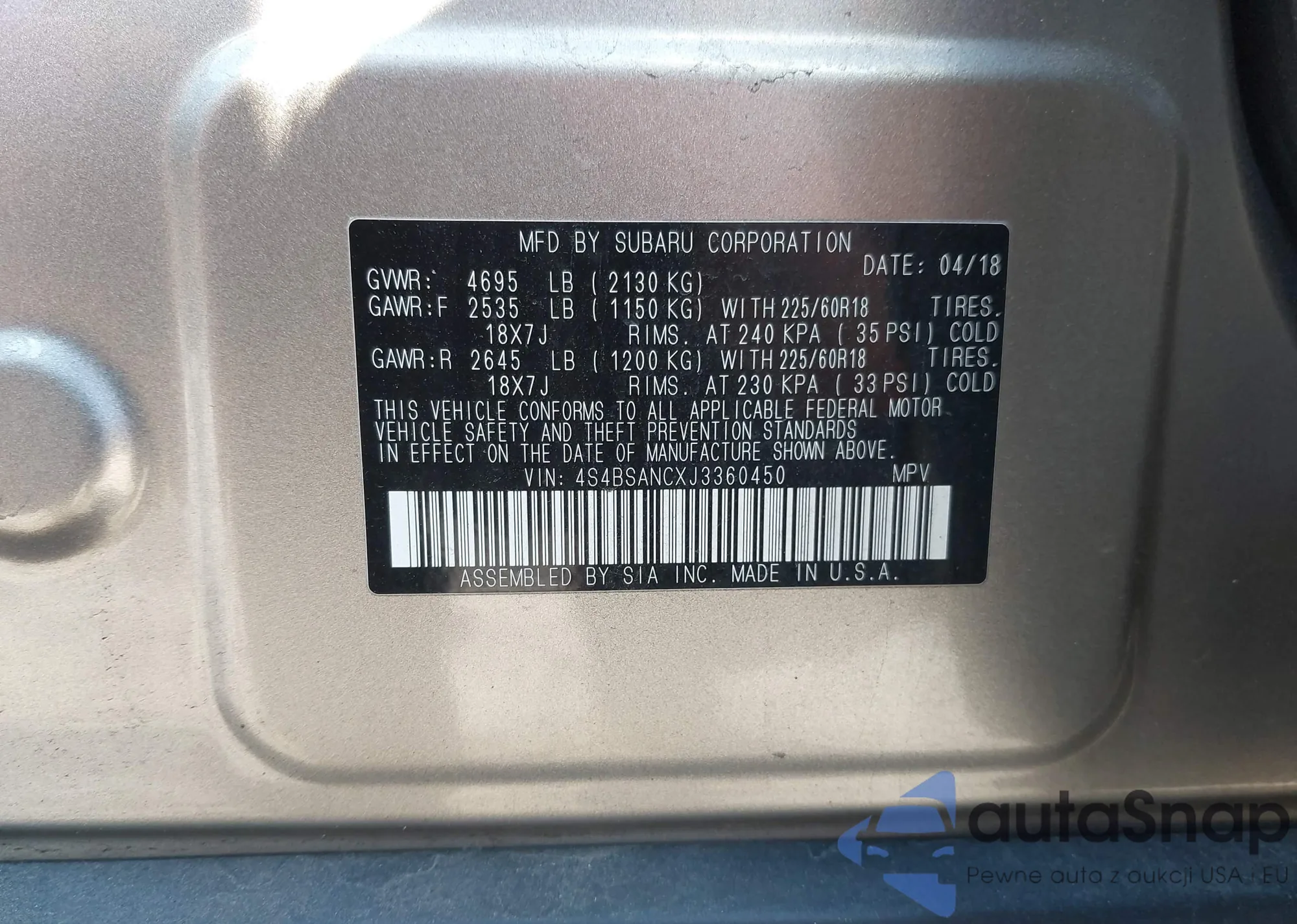 • VIN 4S4BSANCXJ3360450