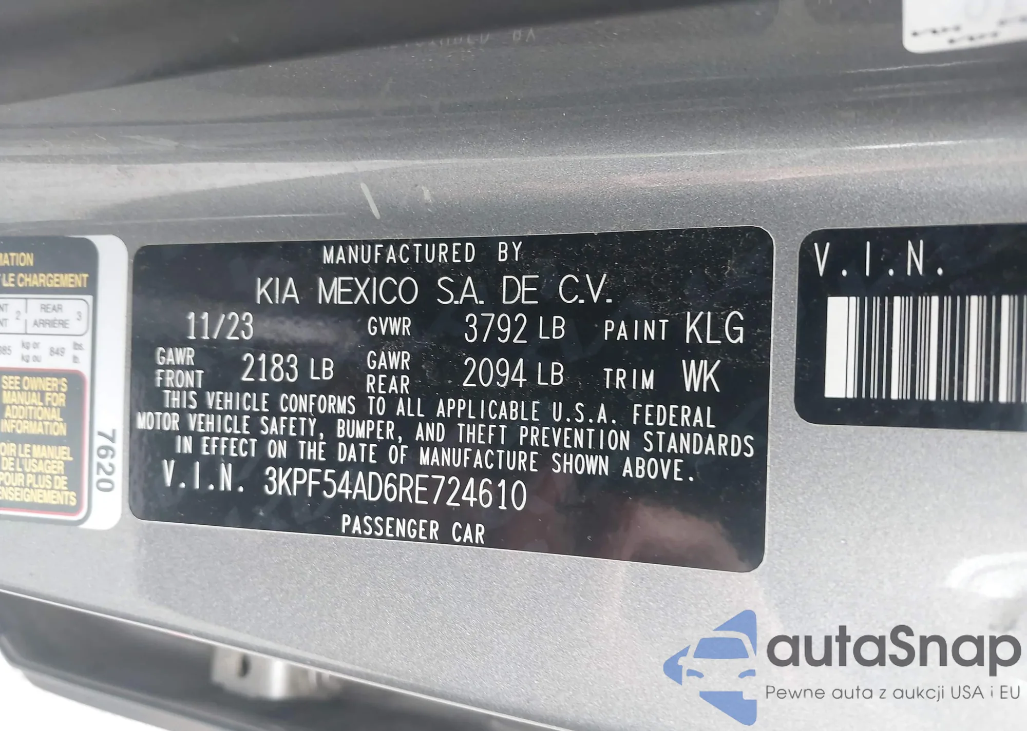 • VIN 3VWLW21K6BM312750