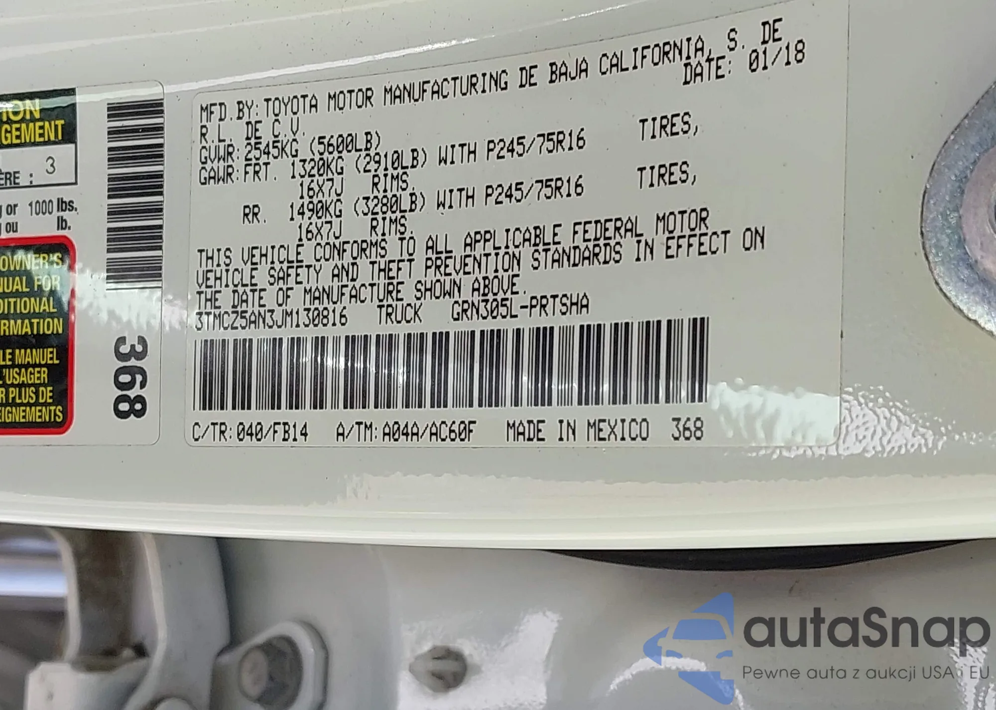 • VIN 3TMCZ5AN3JM130816