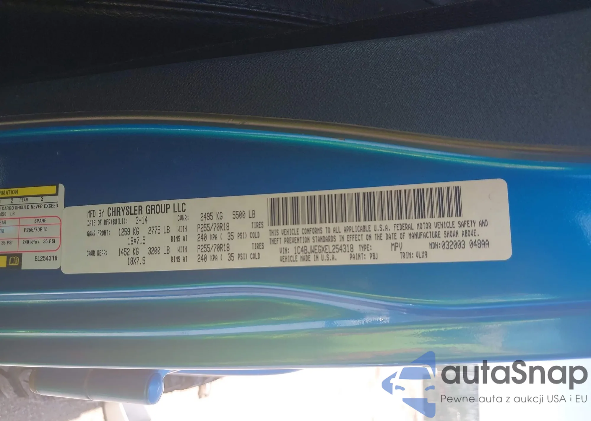 • VIN 1C4BJWEGXEL254318
