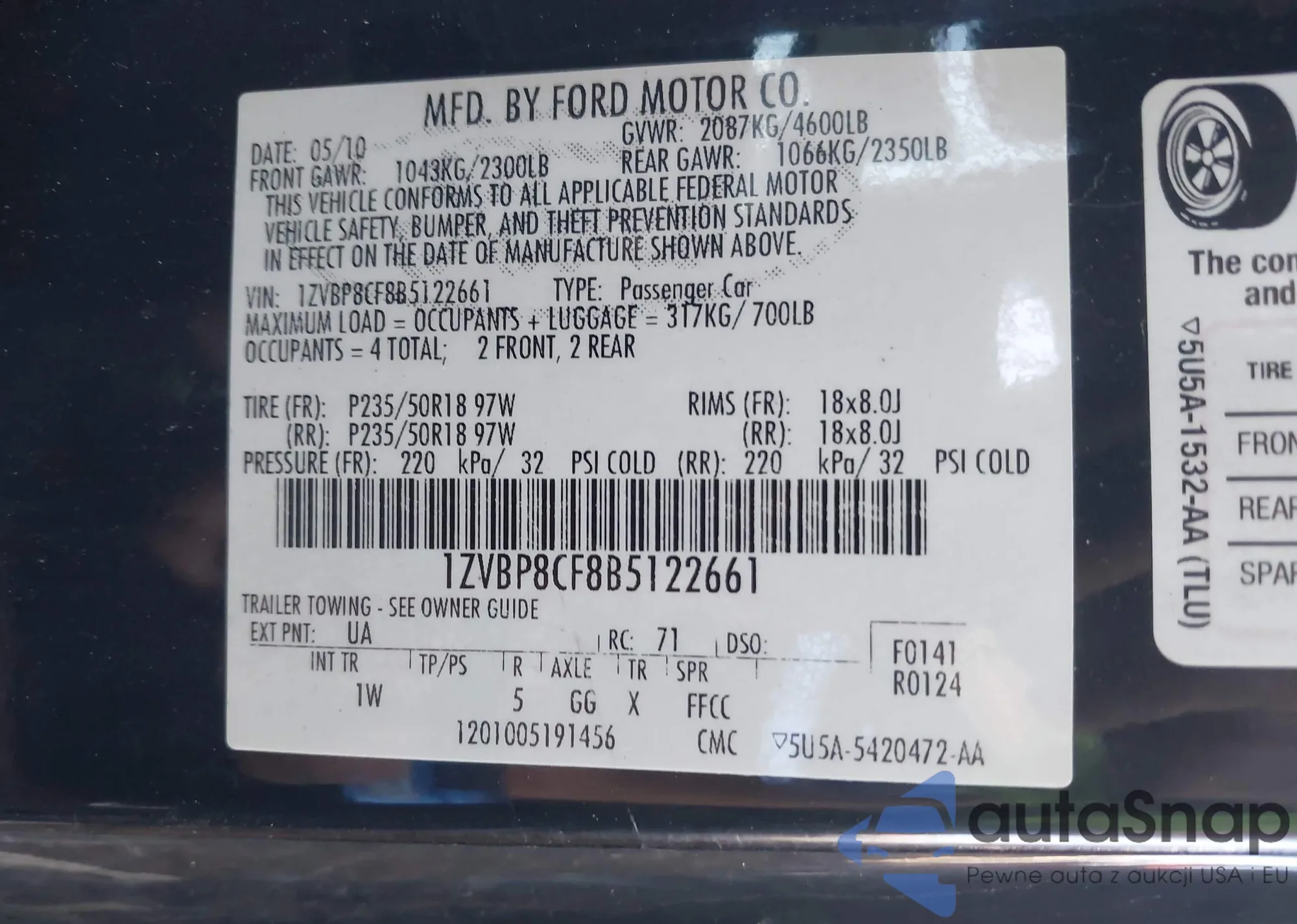 LOT: 43147233 VIN: WP0AA2A78BL012827