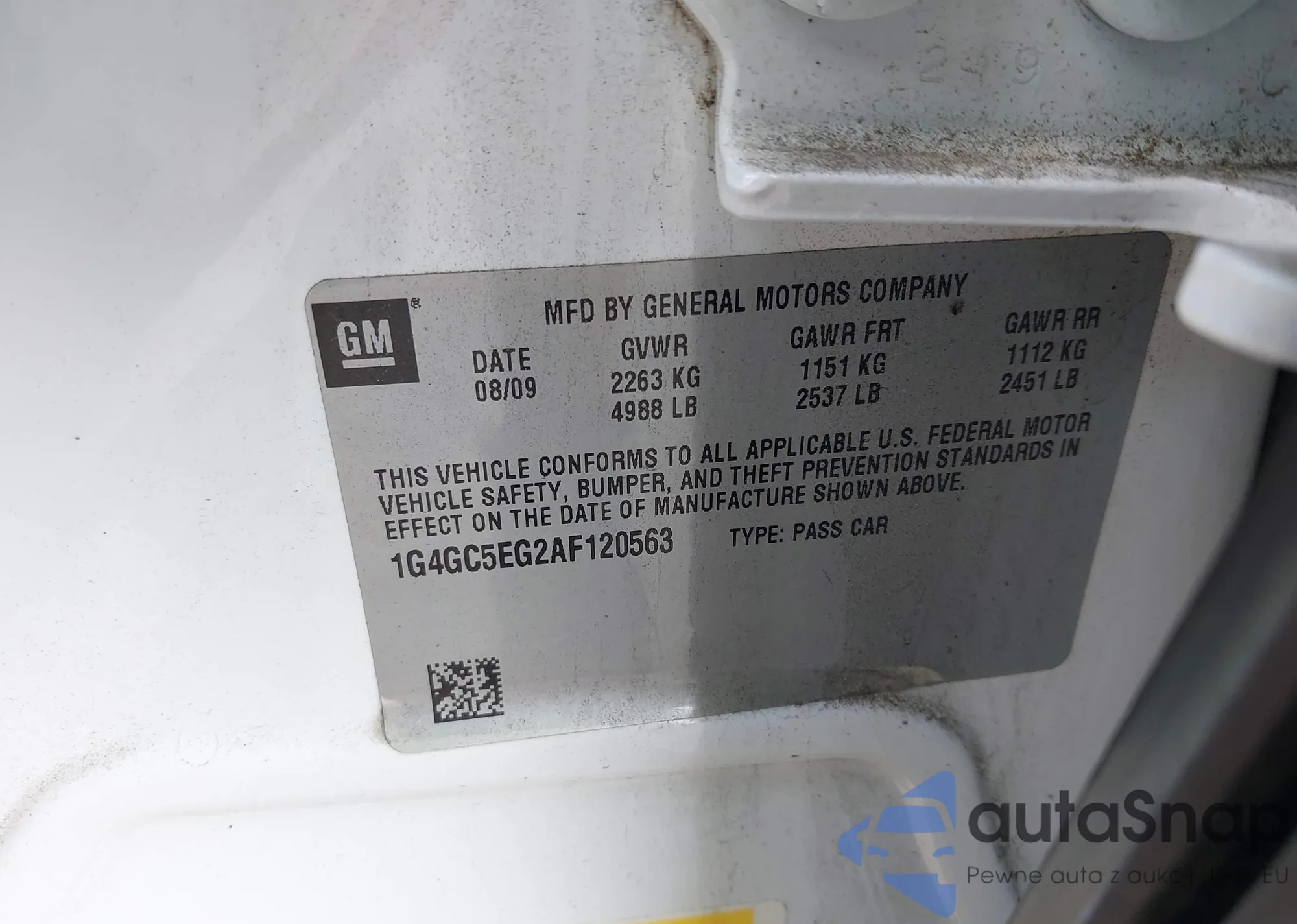 • VIN 1G4GC5EG2AF120563