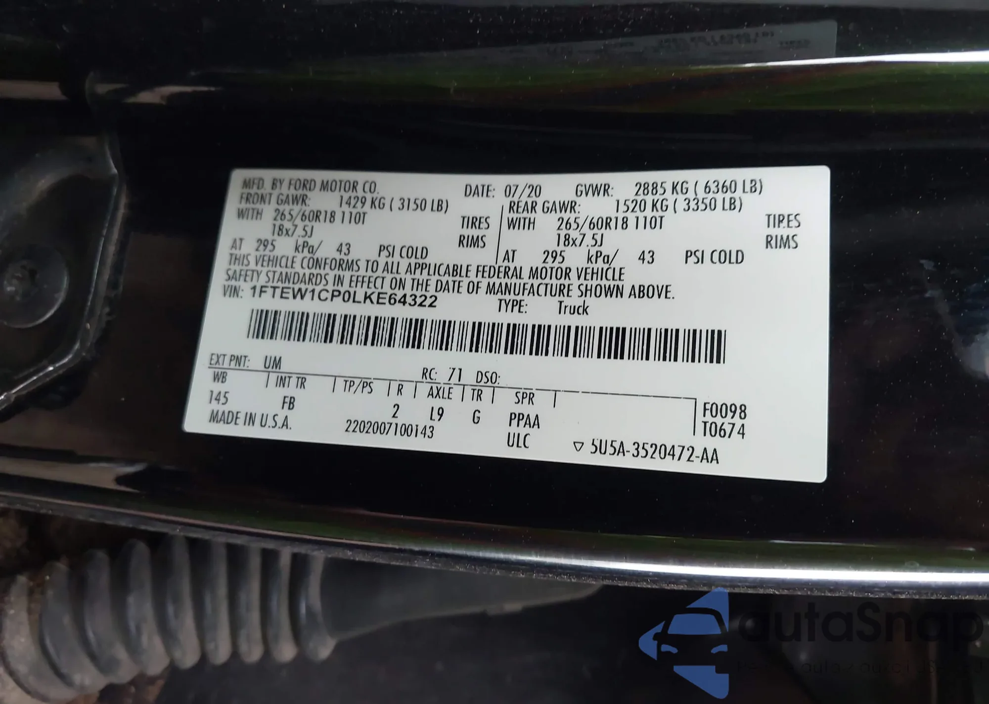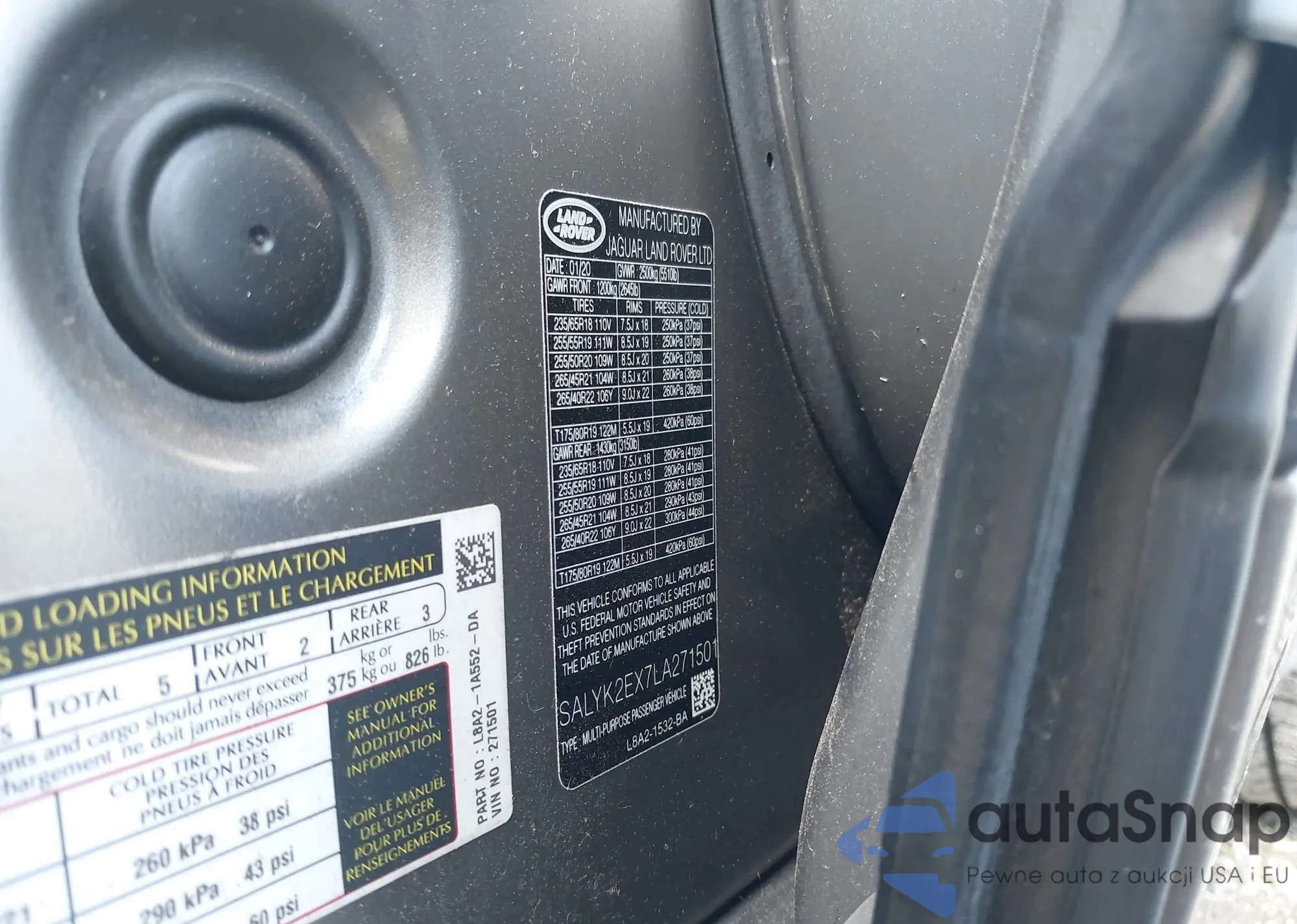 LOT: 43260792 VIN: SALYK2EX7LA271501