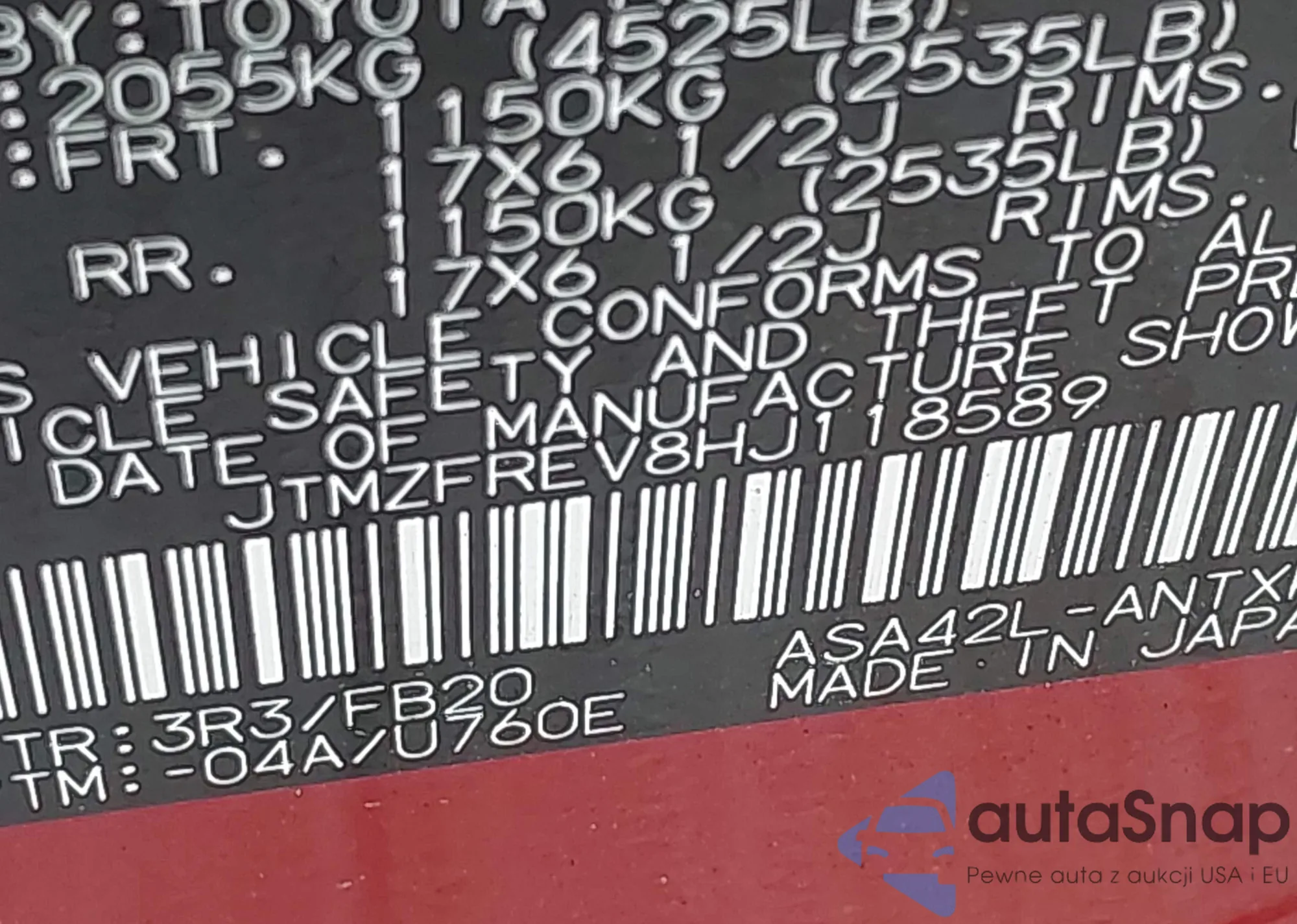 • VIN JTMZFREV8HJ118589