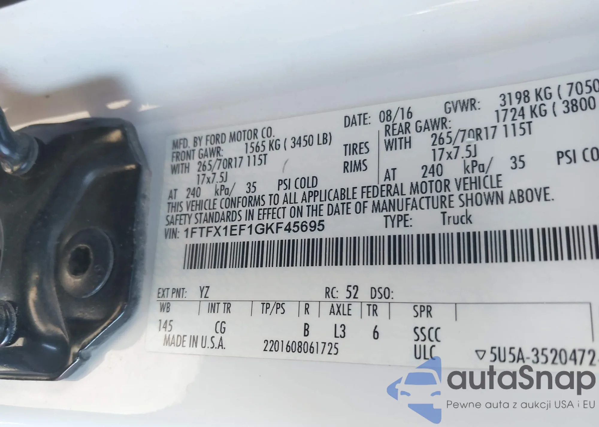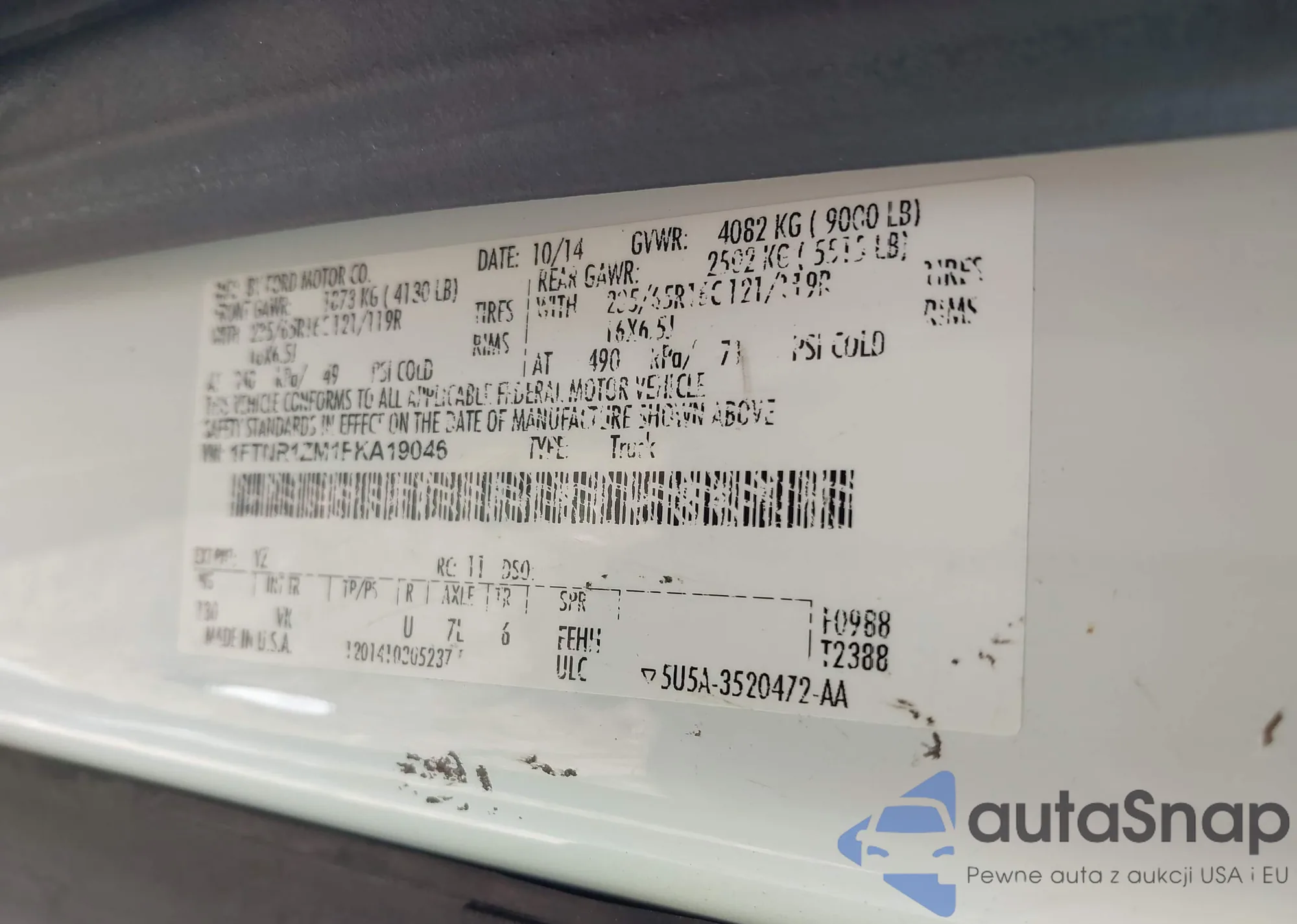 • VIN 1FTNR1ZM1FKA19046