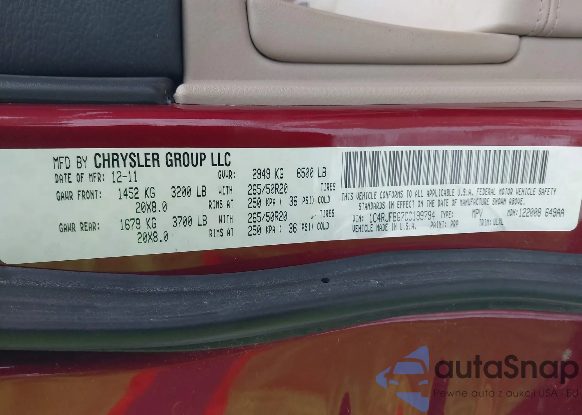 • VIN 1C4RJFBG7CC199794